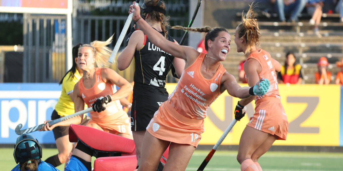 Of het echt een skill is, daarover valt natuurlijk te twisten. Maar wat er gebeurt nadat keepster Noelle Rother van Duitsland redding brengt op een strafcorner van Yibbi Jansen, is wel degelijk een kunststukje. Uit de lucht, en bij de eerste paal, slaat aangeefster Pien Sanders de 1-0 over de doellijn, nadat de bal min of meer per toeval voor haar stick is beland.