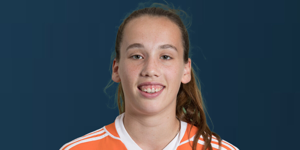Negen jaar geleden, in 2016, had ze dat kunstje ook al feilloos in de vingers, toen ze nog maar net achttien was. Op het EK U18 in het Ierse Cork, toen ze op clubniveau nog uitkwam voor HDM, was ze de belangrijkste pion in de spits. Met drie doelpunten gaf ze voorzichtig haar visitekaartje al af in de poulefase. Maar de schijnwerpers trok ze pas echt naar zich toe in de finale, tegen Duitsland.