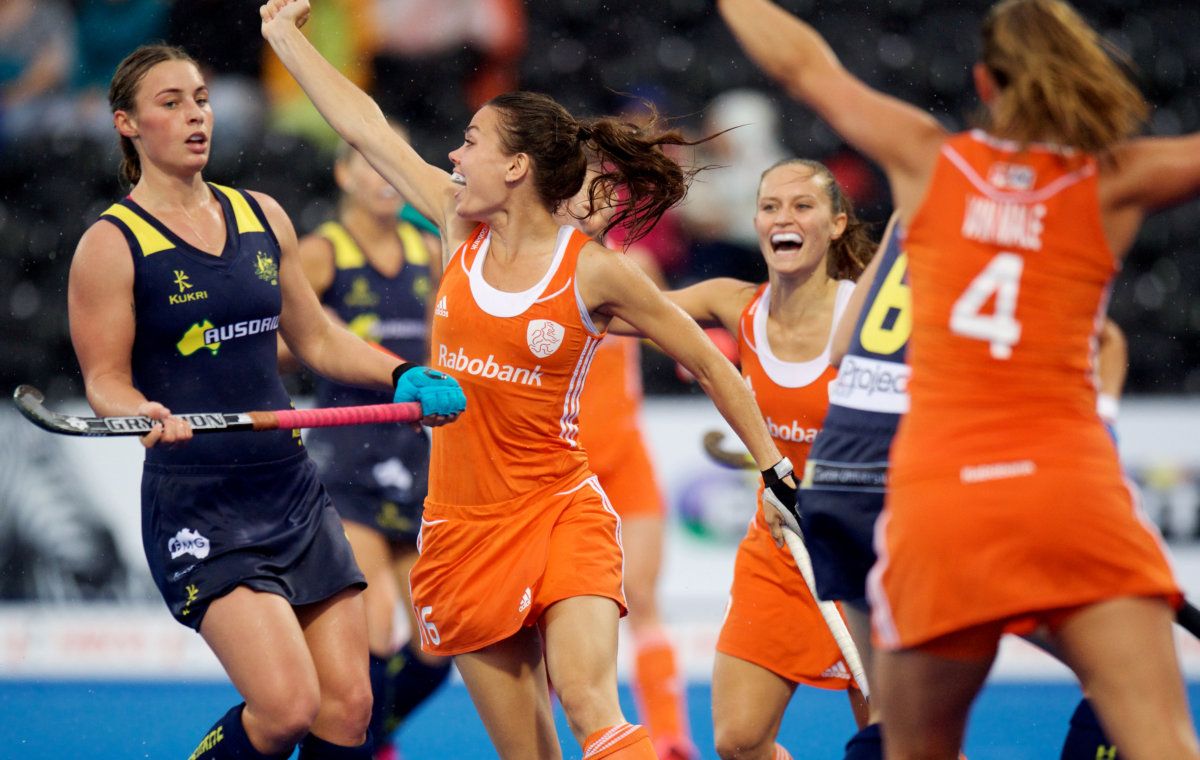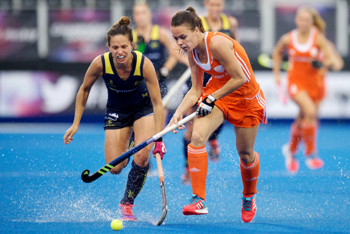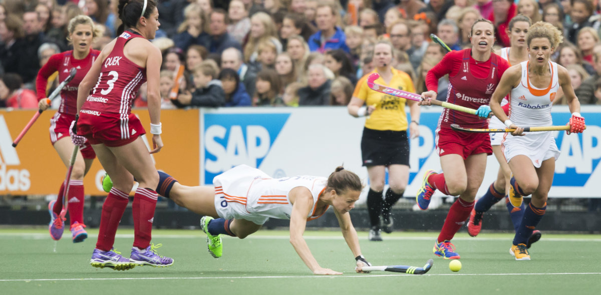 Michelle van der Pols op de Champions Trophy in Londen in 2016 tegen Argentinië Foto: Frank Uijlenbroek