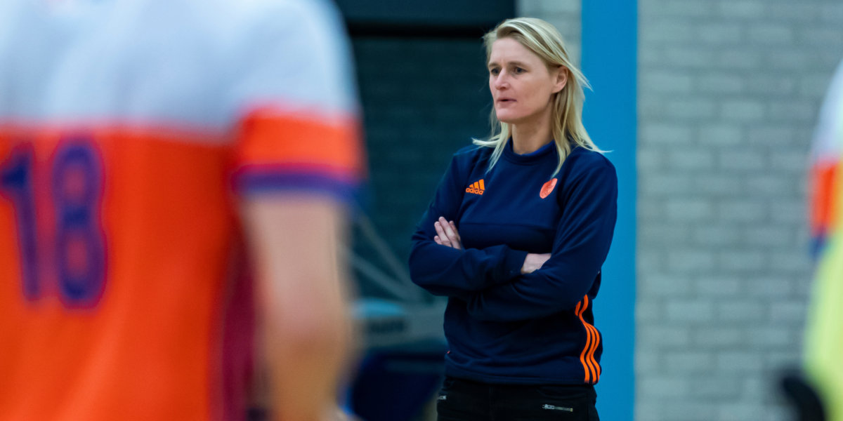 Marieke Dijkstra staat aan de vooravond van haar eerste EK Zaal als bondscoach van de Oranje Heren. De ploeg zette dinsdag voet op Duitse bodem, waar op 17, 18 en 19 januari in de Horst-Korber-Sportzentrum in de hoofdstad Berlijn wordt gestreden om de Europese titel.