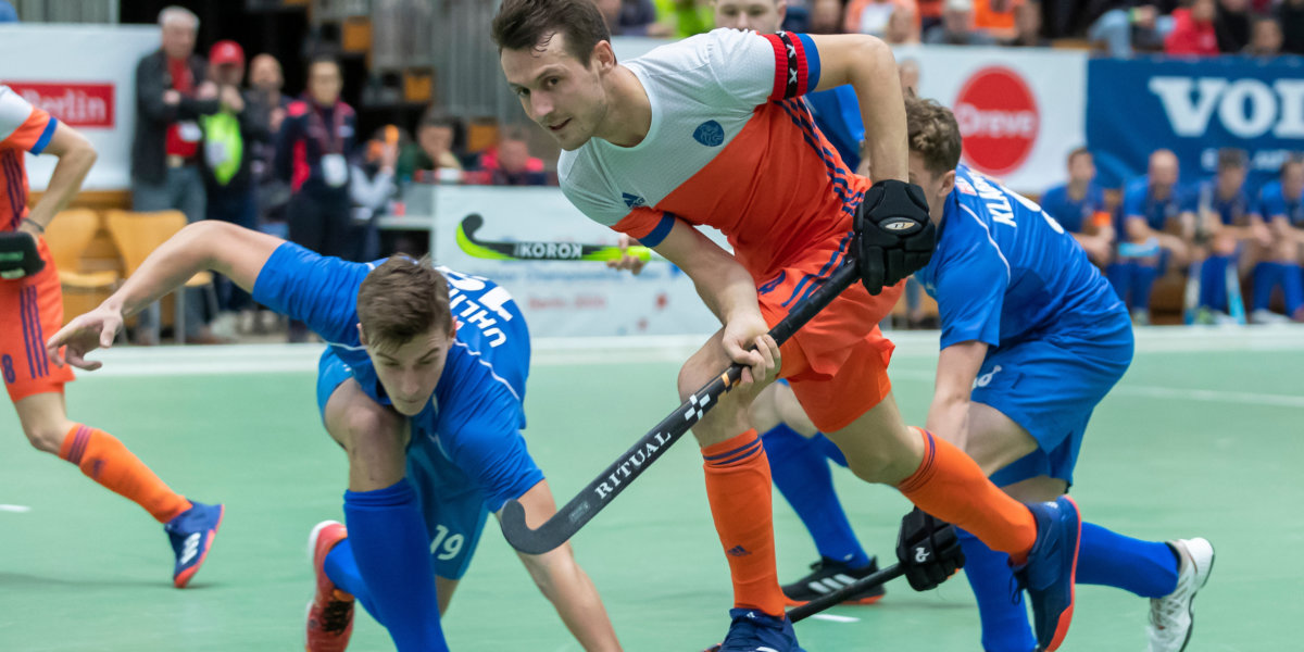 Met een 6-2 zege op Tsjechië kenden de Oranje Heren Zaal een prima start van het EK in Berlijn. Aanvoerder Nicki Leijs was een van de doelpuntenmakers. De speler van Amsterdam scoort vaak uit de strafcorner, maar dit keer niet. ‘Ik ga wat meer mee naar voren.’