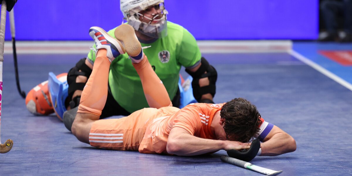 De teleurstelling over het mislopen van de finale is groot bij de Oranje Heren tijdens het EK Zaal in Hamburg. Foto: Willem Vernes
