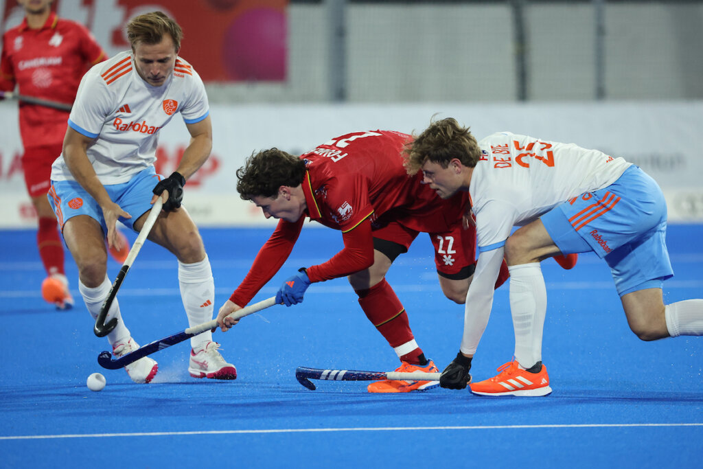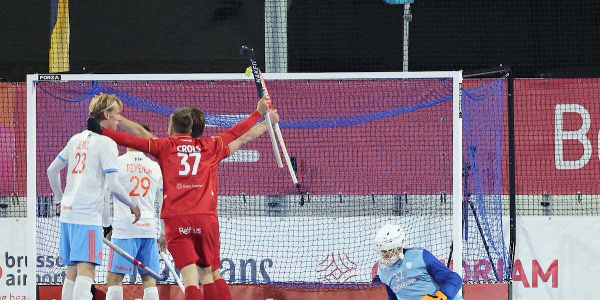 Zo’n kwartier later stond het Belfius wel op de banken. Dat gebeurde na een intikker van Tobias Biekens die na 42 minuten dee 1-0 op de borden bracht. Een wat gelukkige goal, die ontstond na een uitglijder van gelegenheids-middenvelder Floris Wortelboer op het steeds gladder wordend veld. Bovendien was het een treffer die behoorlijk uit de lucht kwam vallen. Nederland was sterker, maar ging met name vrij slordig om met z’n strafcorners.