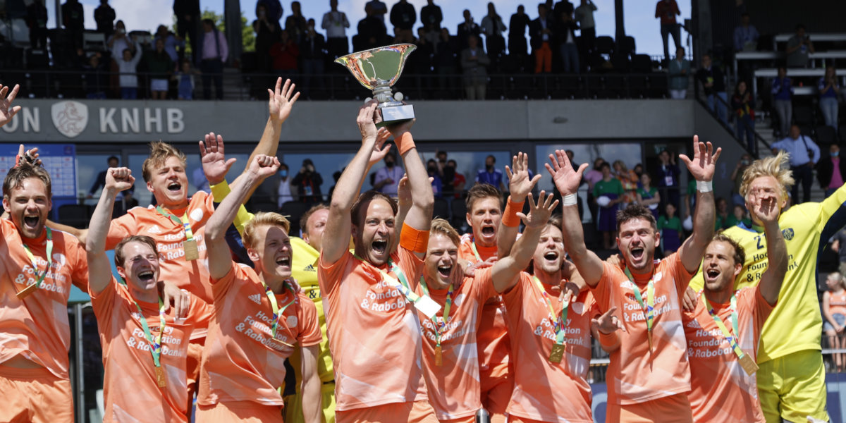 De eerste titel van de sportzomer is binnen voor de Oranje Heren. De ploeg van bondscoach Max Caldas greep na shoot-outs het Europees goud ten koste van Duitsland. ‘Dit hebben we afgedwongen’, reageert aanvoerder Billy Bakker. ‘We grijpen drie keer goud in vier edities van het EK. Het is mooi dat we hier winnen, maar er is nog een groter doel en dat is over anderhalve maand.’