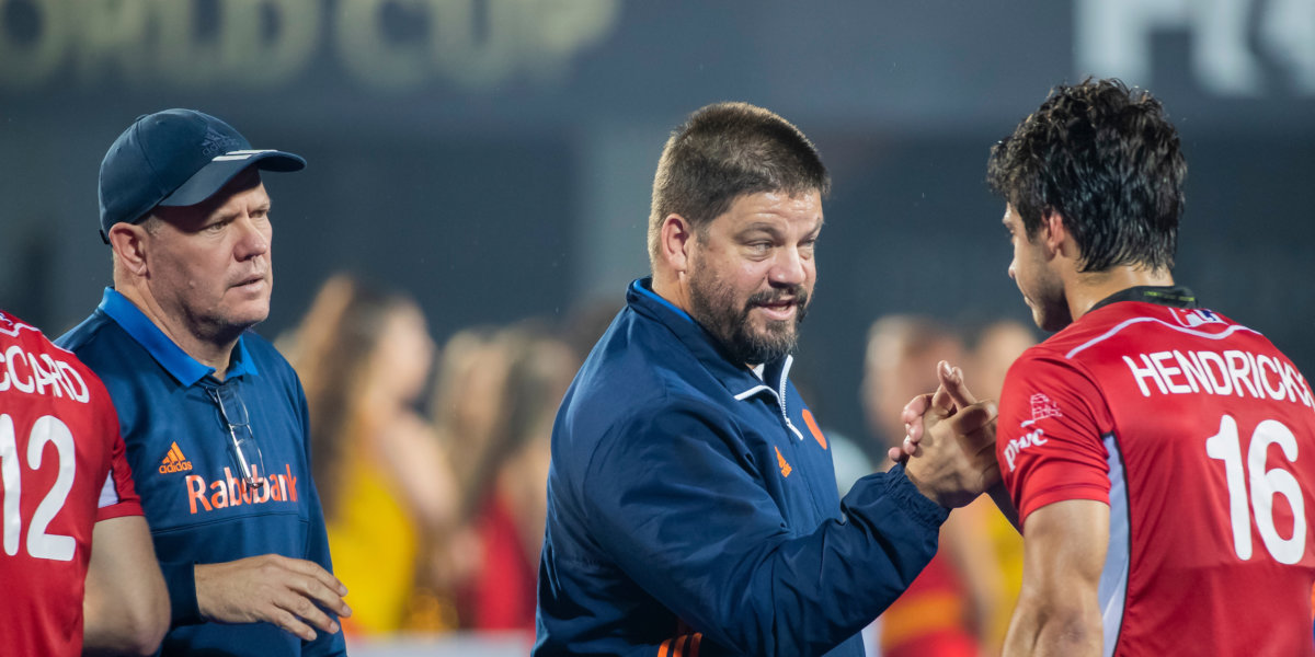 ‘Wij namen een risico door keihard te trainen richting die eerste wedstrijden. Wij werden langzaam beter in het toernooi. We hebben er nog over gedacht om tegen Zuid-Afrika (de laatste poulewedstrijd, red.) zonder keeper te beginnen en als een gek op jacht te gaan naar doelpunten. Maar als we eerste zouden worden in de poule (voor India, red.) kregen we Nederland en speelden we geen cross-over. We gingen daarom niet gek doen tegen Zuid-Afrika. We speelden liever nog een wedstrijd.’