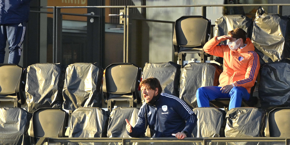 Caldas pept z’n spelers op na de 4-2 nederlaag. Foto: Willem Vernes