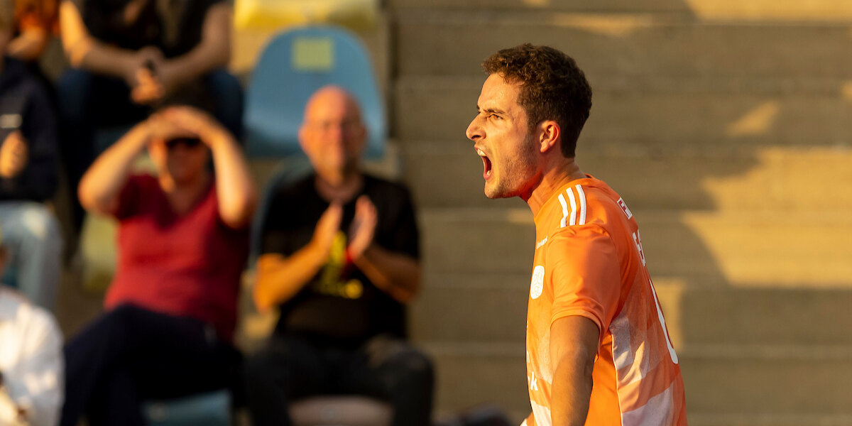 Vlak na die preek van Delmée herstelde De Geus hoogstpersoonlijk de opgelopen schade. ‘Gelukkig wel. Ik zag een klein stuiterballetje mijn kant opkomen. De keeper kwam niet echt uit. Dus ik moest gewoon uithalen. En wel zien waar-ie terechtkomt. Ik kom niet zo vaak in die positie. Dat ging ook nog even door mijn hoofd. Ik had tijd om na te denken. Vorig seizoen heb ik er maar drie gemaakt bij Kampong. Als ik scoor zijn dat meestal tip-ins die ik via Jip Janssen krijg. Hij pusht ‘m dan op mijn stick, daar hoef ik niets voor te doen.’ Lachend: ‘Nu moest ik er harder voor werken.’