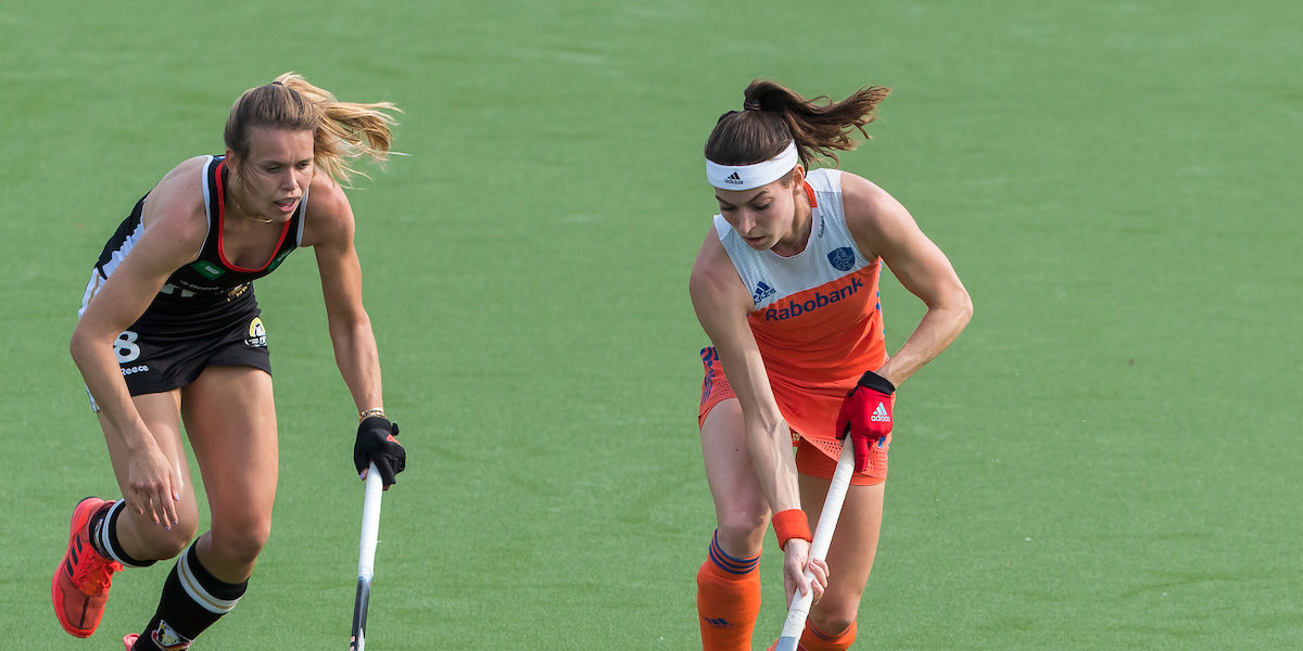 ‘Blijven gaan, vasthouden en vertrouwen houden.’ Dat was volgens Eva de Goede uiteindelijk het recept van de Oranje Dames om Duitsland in de halve finales van de Grand Final onder de duim te krijgen. De 2-1 overwinning kwam donderdag in het Wagener Stadion niet zonder slag of stoot tot stand.