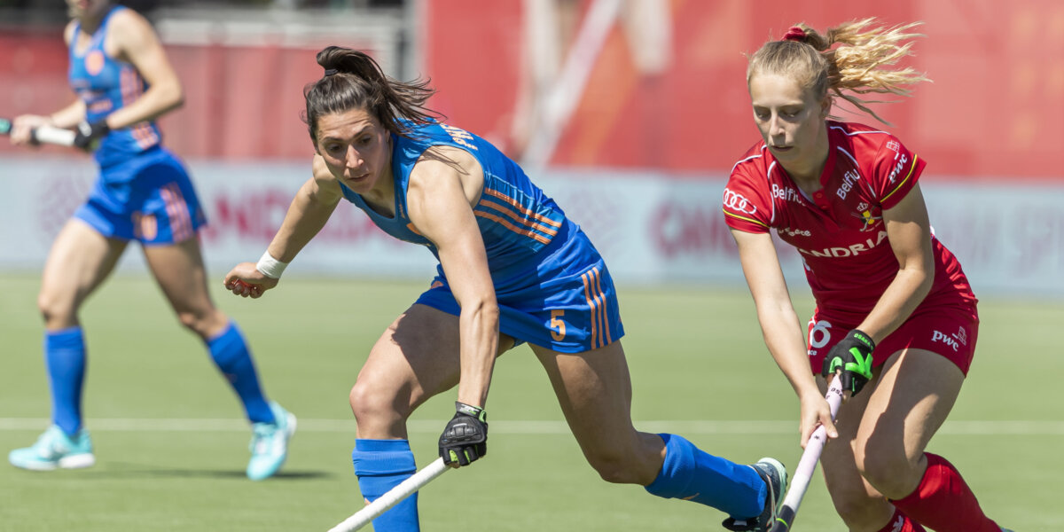 Met een grote glimlach nam Malou Pheninckx na afloop van de halve finale in de mixed zone de felicitaties in ontvangst voor het bereiken van de finale. Na een pittig onderonsje met de bij vlagen brutaal spelende Belgen van coach Raoul Ehren speelt ze met Oranje voor de derde keer op rij om de Europese titel.
