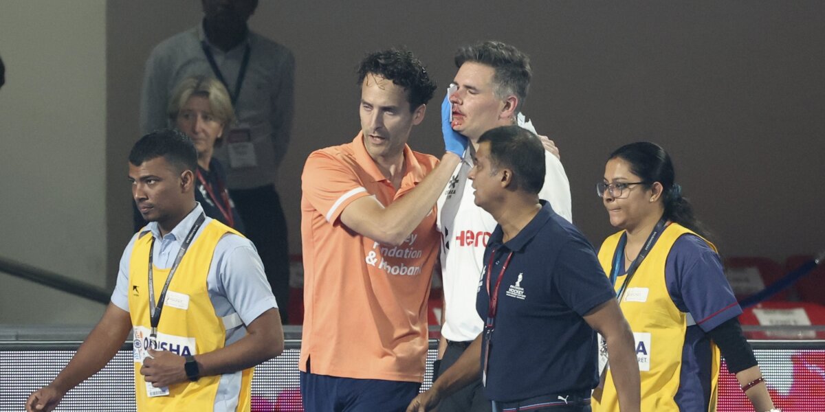 Het Kalinga Stadium is tijdens het WK een muur van geluid. Maar woensdag in de kwartfinalezege van Nederland op Zuid-Korea (5-1) was dat echt even anders. Vlak voor rust hield iedereen zijn adem in toen scheidsrechter Ben Göntgen een bal tegen zijn hoofd kreeg.