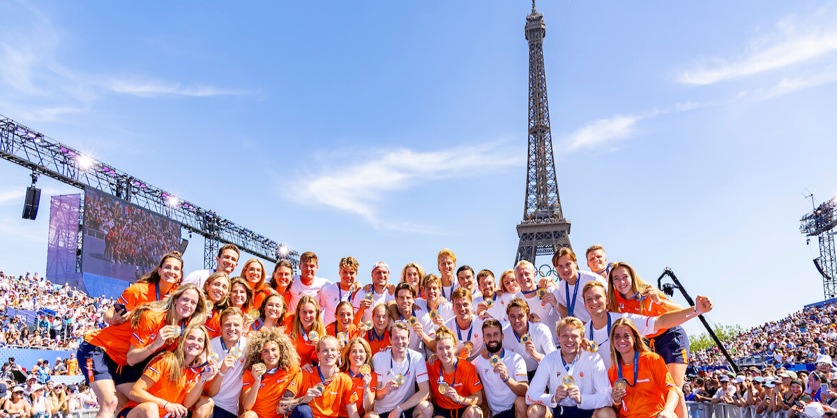 Op de Spelen was er in Parijs dagelijks een huldiging van de medaillewinnaars op Trocadéro, volgens velen het plein waar je het mooiste uitzicht hebt op de Eiffeltoren. Met een blauwe loper richting de meest markante landmark werden teams en sporters opgeroepen voor hun medalparade. Zo ook de Oranje Heren en Oranje Dames op zaterdagmiddag. Onder de heerlijke zon straalden de Nederlandse sterren. Ze genoten. En de huldiging leverde prachtige plaatjes op.