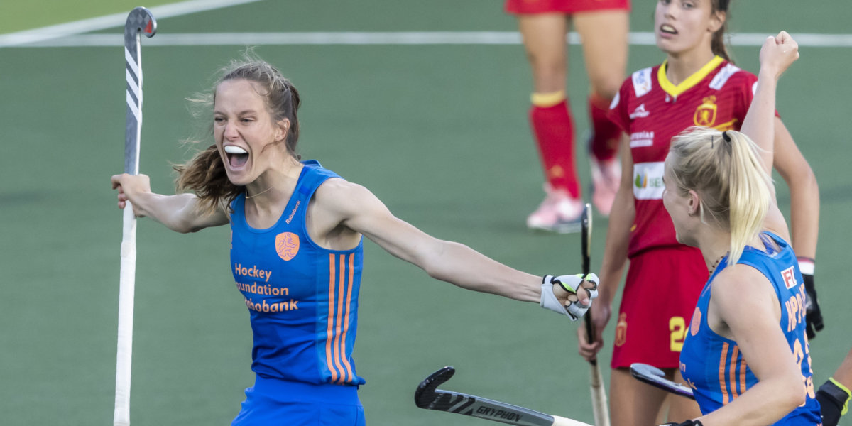 Toch kwam het verschil in klasse snel bovendrijven. Maria Verschoor schoot in het eerste kwart een bal op de paal. De 1-0 viel even later alsnog. Vanaf links gaf aanvoerder Eva de Goede een bal voor die via de stick van Candela Mejías van richting veranderde, het doel van Spanje in.