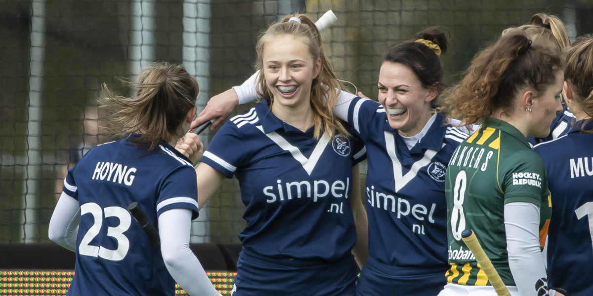 Met een rood, wit en blauw geschminkt vlaggetje op haar linkerwang bekeek ze zondagmiddag op het complex van Union het duel tussen de Oranje Dames en Argentinië. Juichte ze vooral voor Maxime Kerstholt, samen met haar Pinoké-teamgenoten. Een week later is ze geen fan op de tribune, maar onderdeel van de groep. Het bizarre seizoen van Maria Steensma (20).