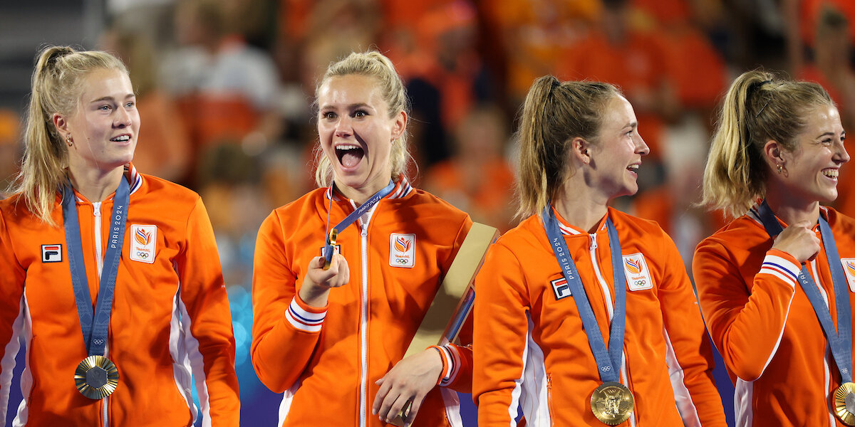 Die medaille zag ze op de Spelen van Tokio alleen van afstand. Toen was zij een van de reserves. Keek ze met Anne Veenendaal vanaf de tribune hoe hun teamgenoten is het desolate Oi Stadium een gouden plak kregen. Vrijdagavond mocht Moes in het afgeladen Yves-du-Manoir zelf vooroverbuigen om het allermooiste eremetaal te krijgen.