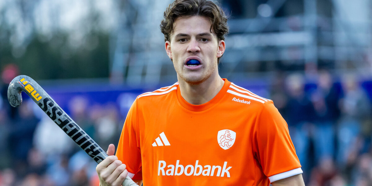 Een ongelukkige botsing tijdens de warming-up afgelopen zaterdag zorgt ervoor dat Oranje-aanvaller Miles Bukkens voorlopig buitenspel staat. Zeker geen Pro League en mogelijk ook geen EK in Duitsland deze zomer voor de spits van Pinoké, die met een grote brace om zijn linkerknie en krukken de wedstrijd van Nederland tegen India (3-2 zege) bekeek in het Wagener Stadion.