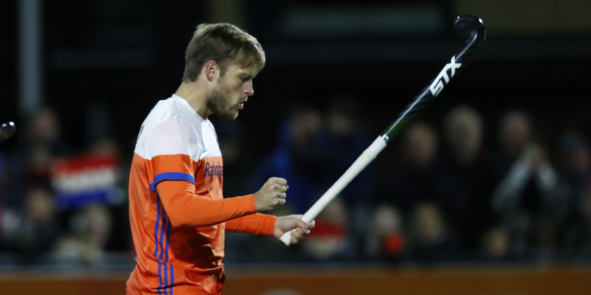 Mirco Pruyser maakte zijn 250ste en 251ste doelpunt in zijn loopbaan tijdens de uitzwaaiwedstrijd van de Oranje Heren tegen Ierland (7-1). (c) Willem van Vernes Fotografie