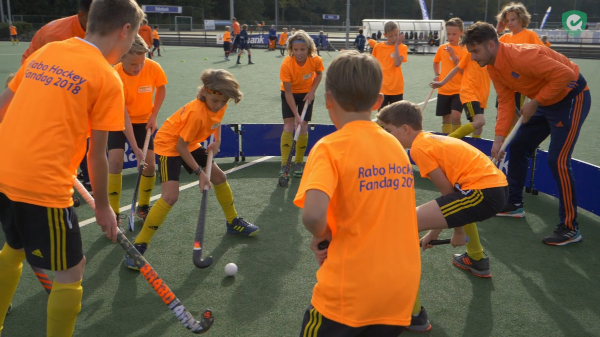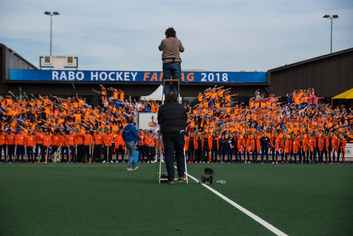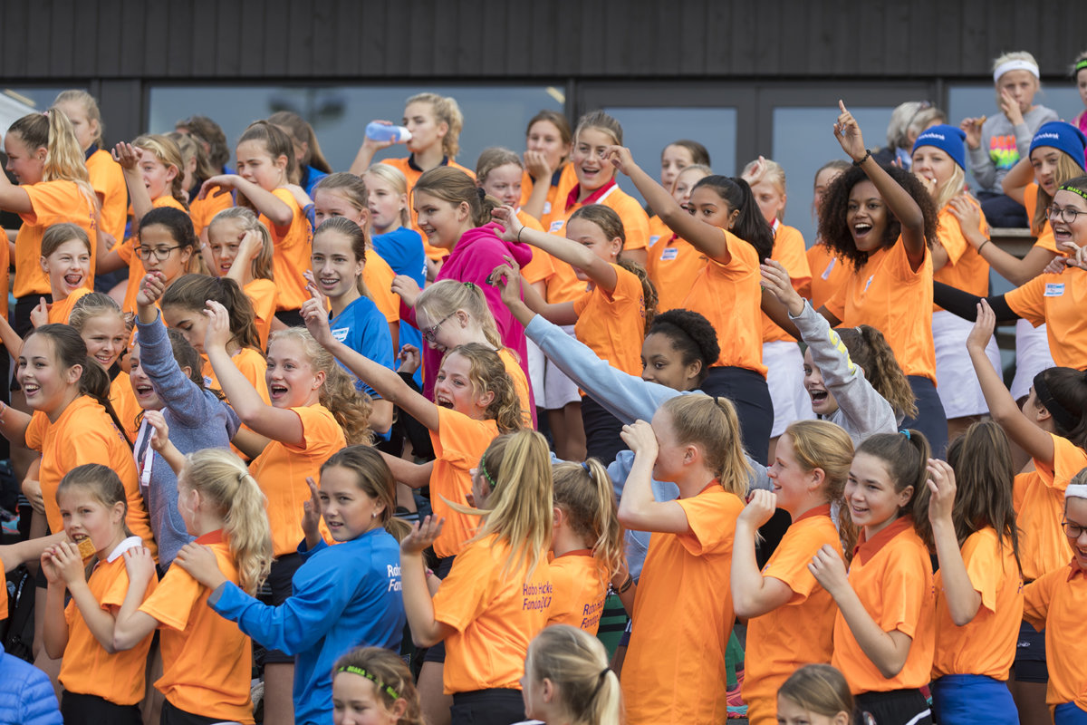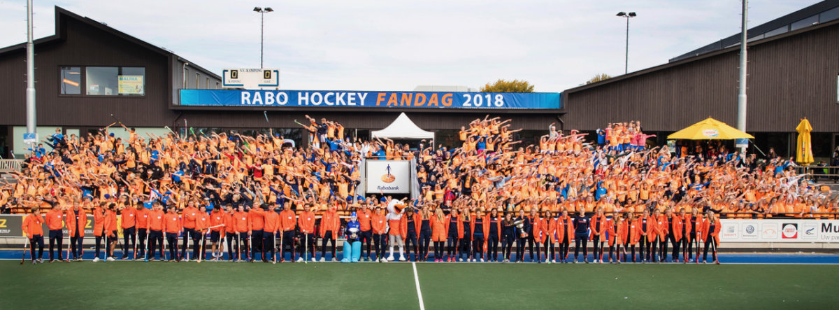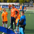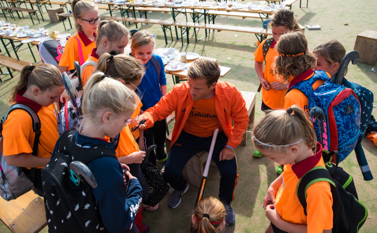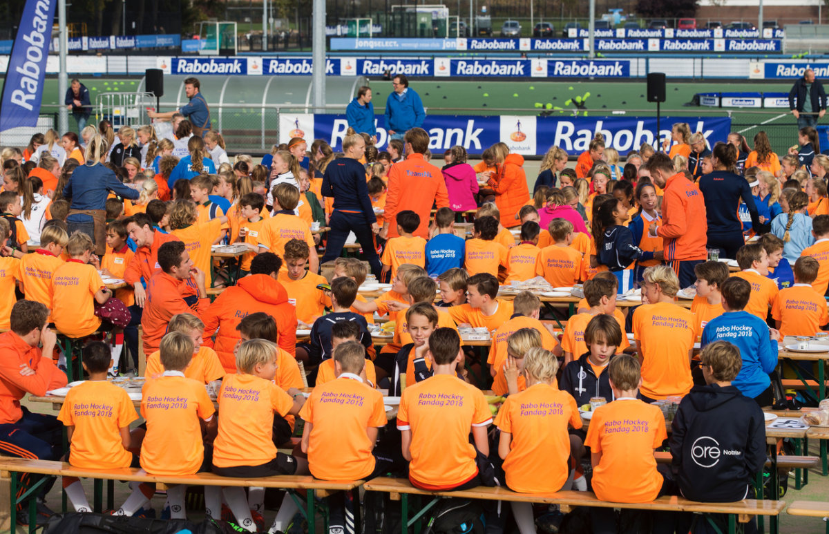 Stralende internationals én nog meer stralende kinderen op de Rabo Fandag 2018 zaterdag op het complex van Kampong in Utrecht. De honderden uitverkoren kinderen konden pielen met Jorrit Croon, de sleeppush leren van Caia van Maasakker of Seve van Ass en de backhand slaan met Derck de Vilder. Er was een gezamenlijke lunch op het veld en natuurlijk werden de Oranje-helden uitgebreid gehuldigd.