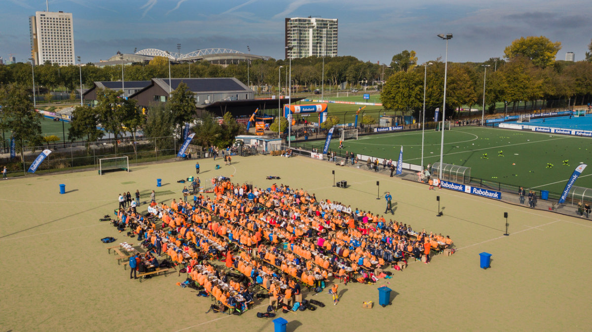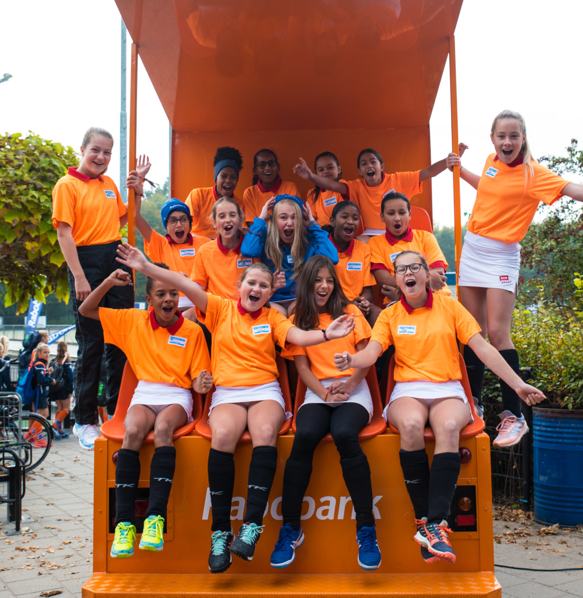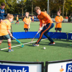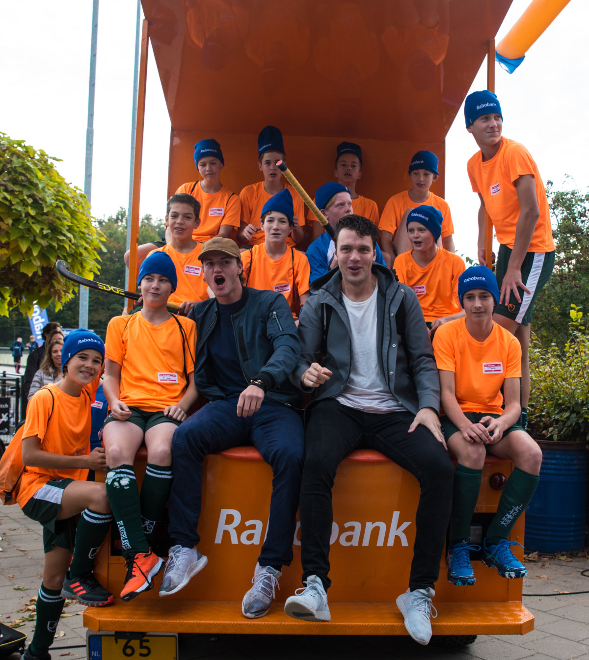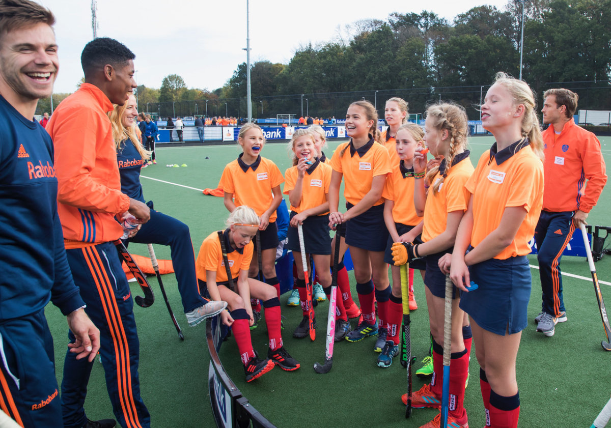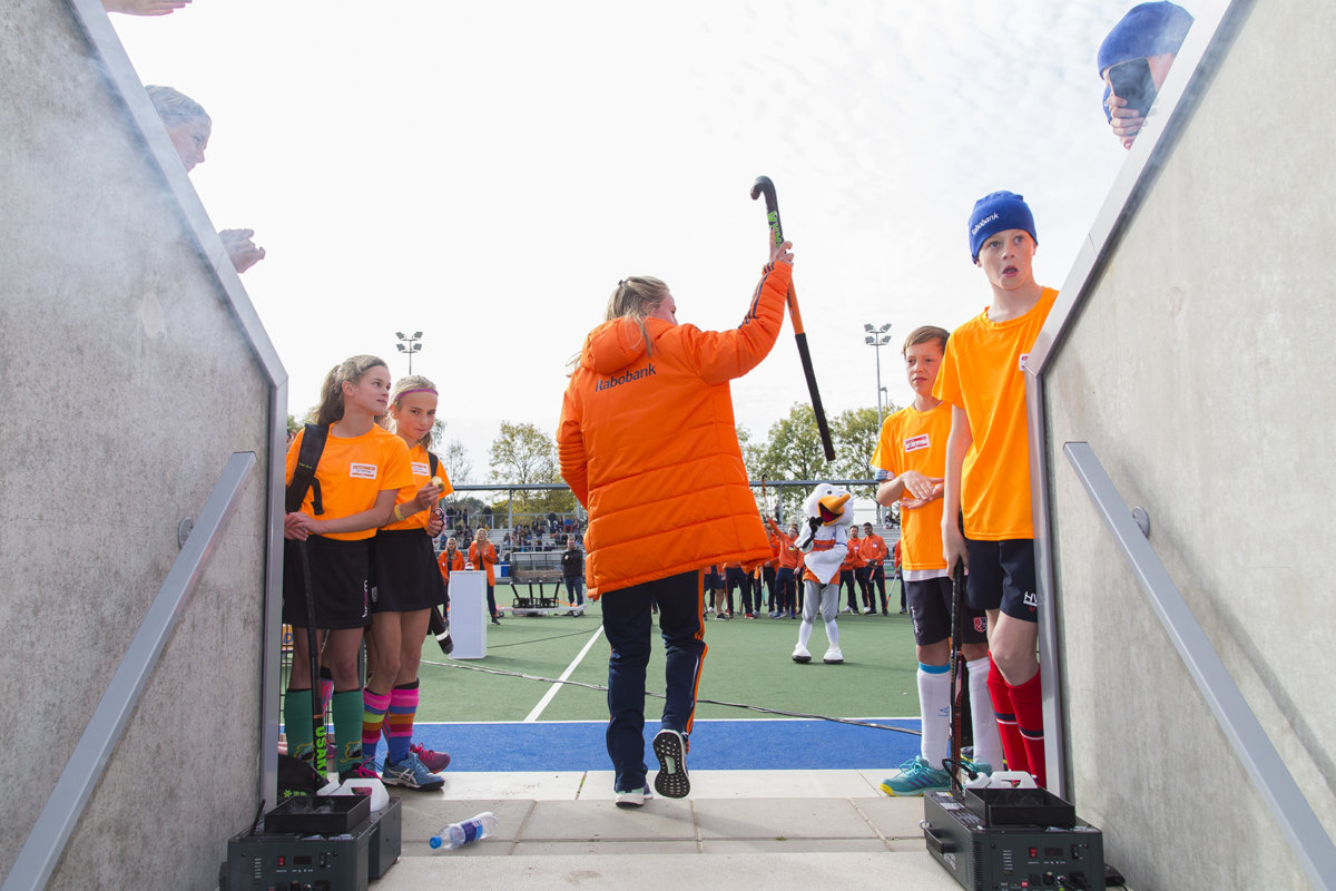Stralende internationals én nog meer stralende kinderen op de Rabo Fandag 2018 zaterdag op het complex van Kampong in Utrecht. De honderden uitverkoren kinderen konden pielen met Jorrit Croon, de sleeppush leren van Caia van Maasakker of Seve van Ass en de backhand slaan met Derck de Vilder. Er was een gezamenlijke lunch op het veld en natuurlijk werden de Oranje-helden uitgebreid gehuldigd.
