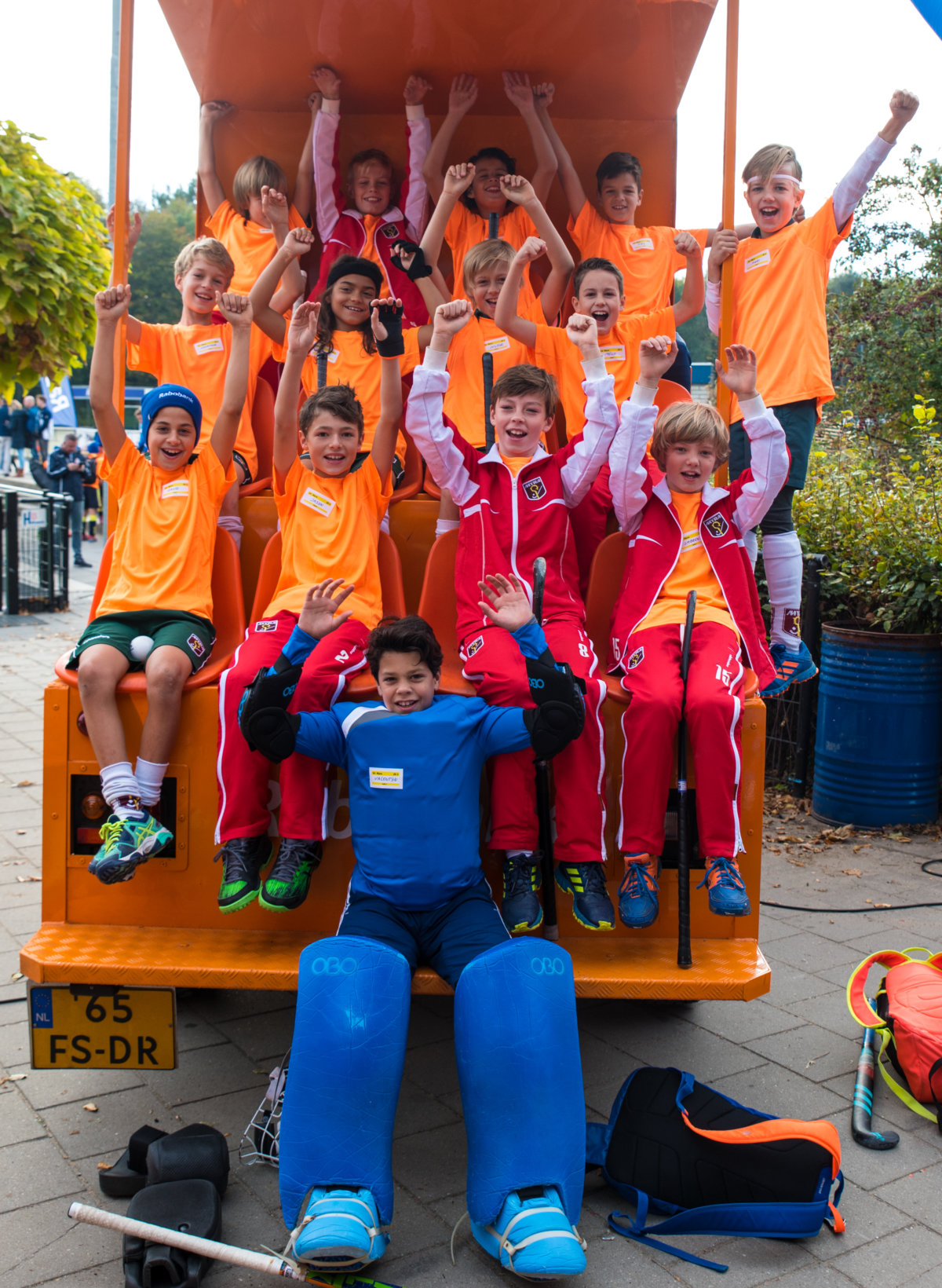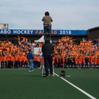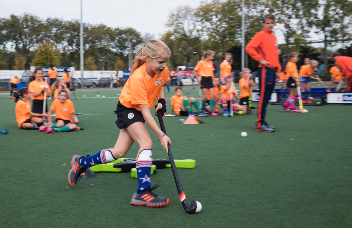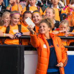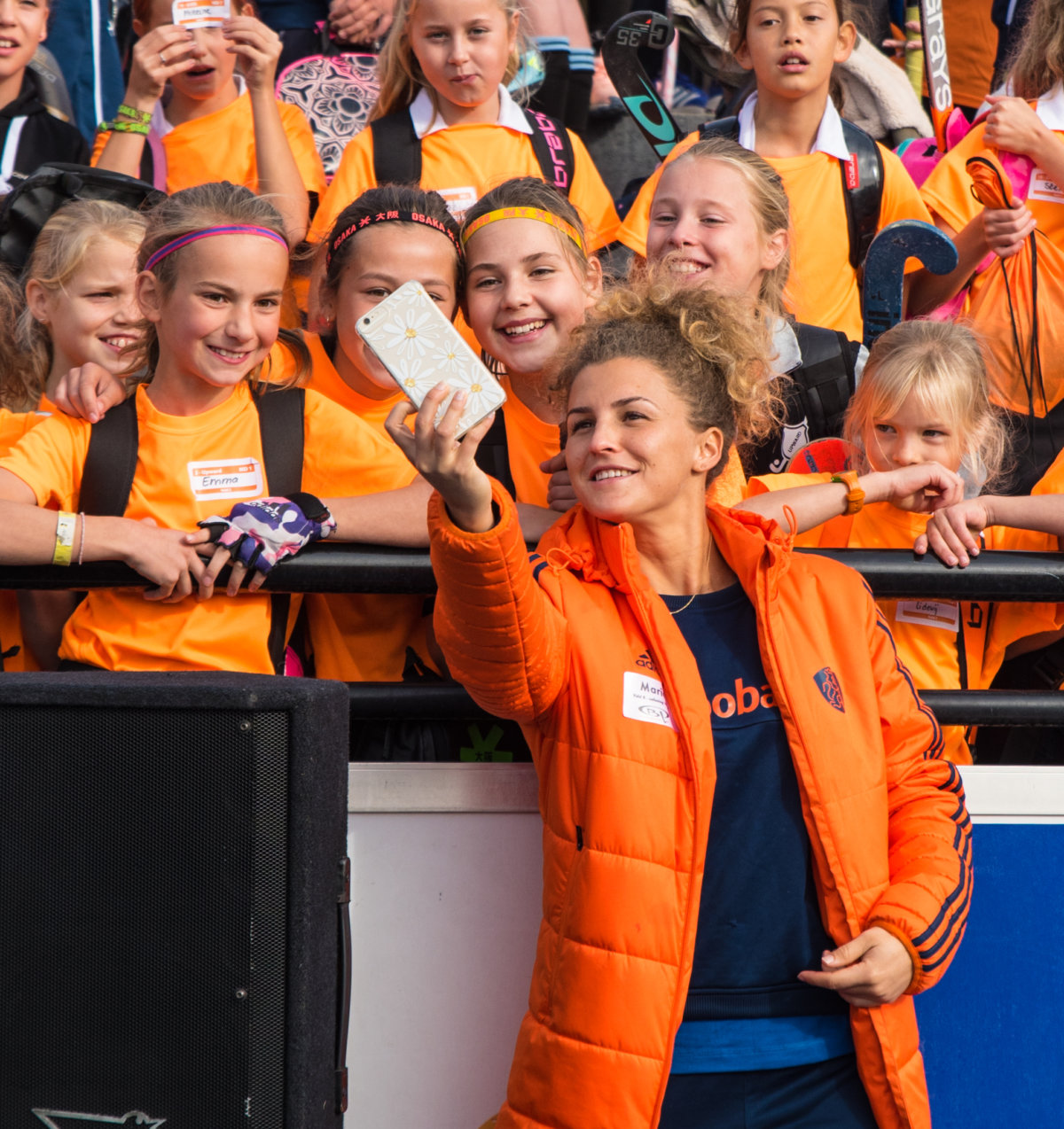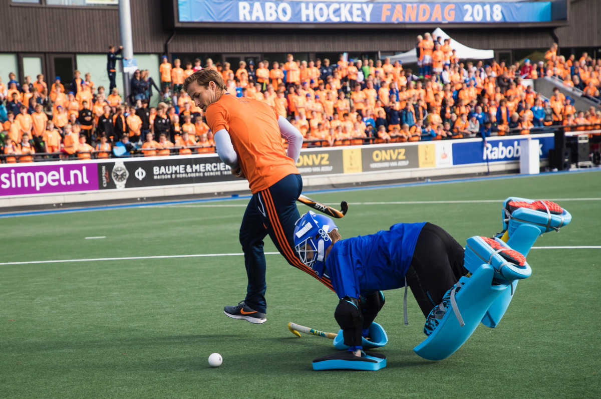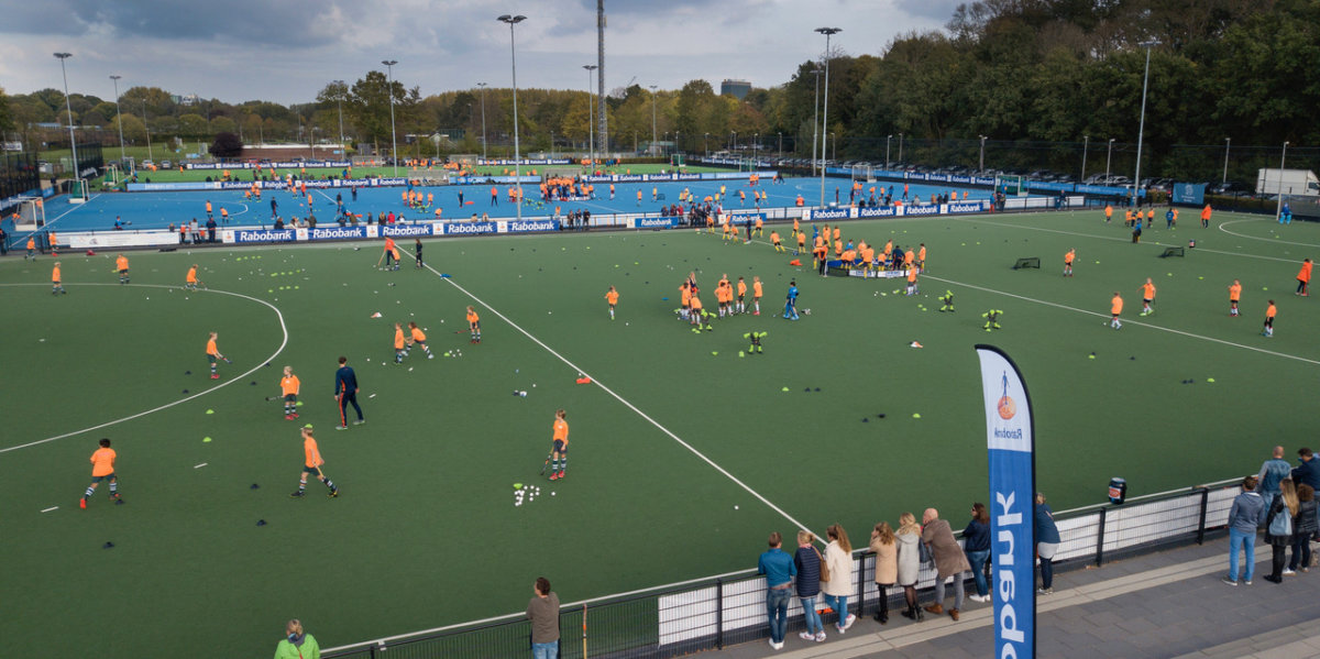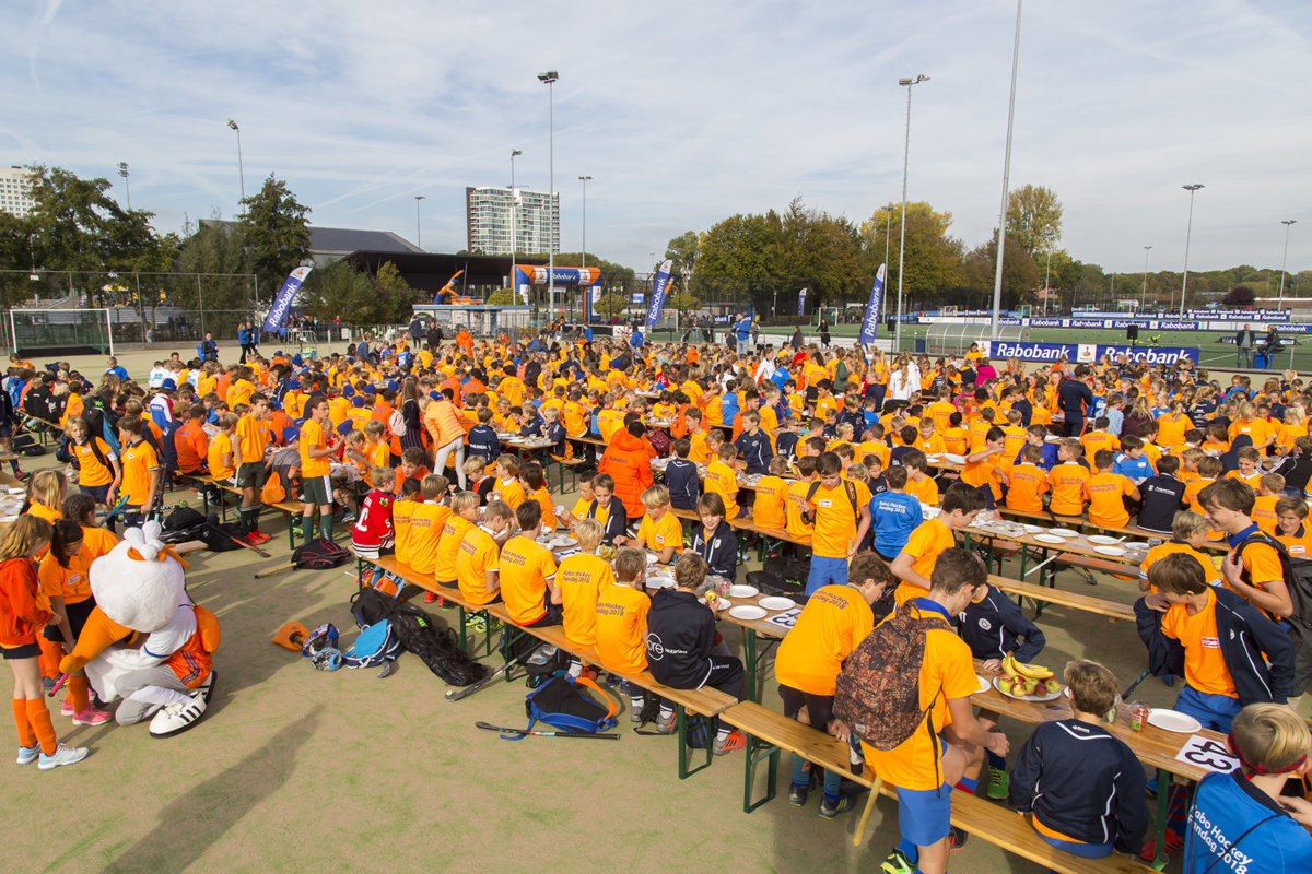 Stralende internationals én nog meer stralende kinderen op de Rabo Fandag 2018 zaterdag op het complex van Kampong in Utrecht. De honderden uitverkoren kinderen konden pielen met Jorrit Croon, de sleeppush leren van Caia van Maasakker of Seve van Ass en de backhand slaan met Derck de Vilder. Er was een gezamenlijke lunch op het veld en natuurlijk werden de Oranje-helden uitgebreid gehuldigd.