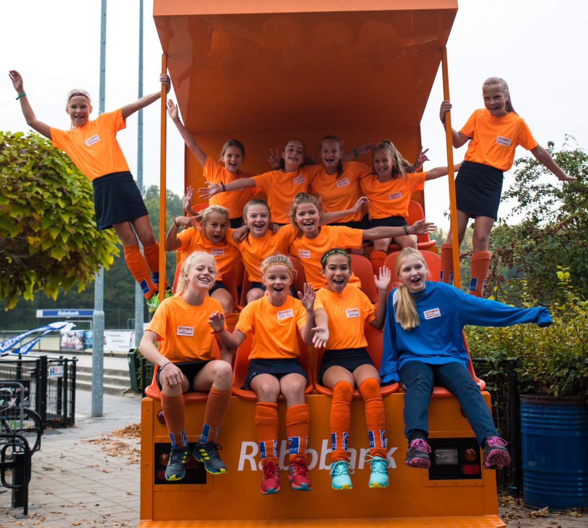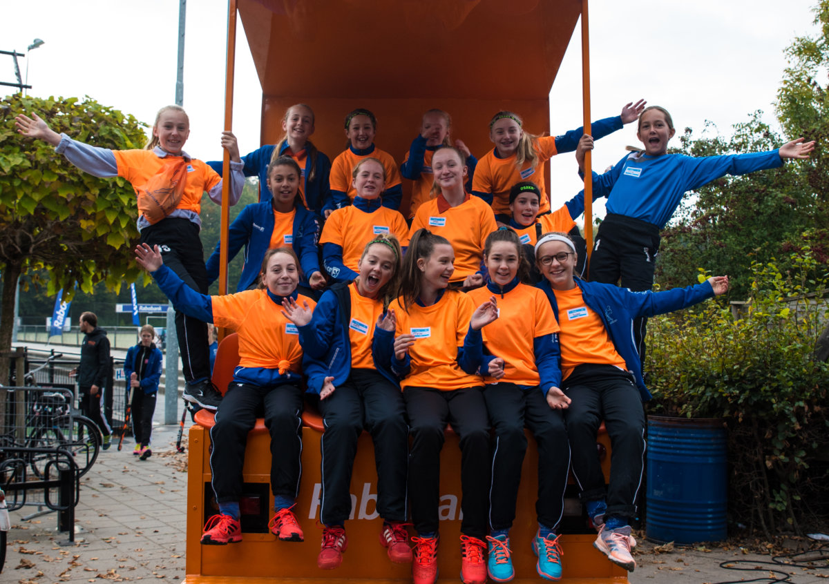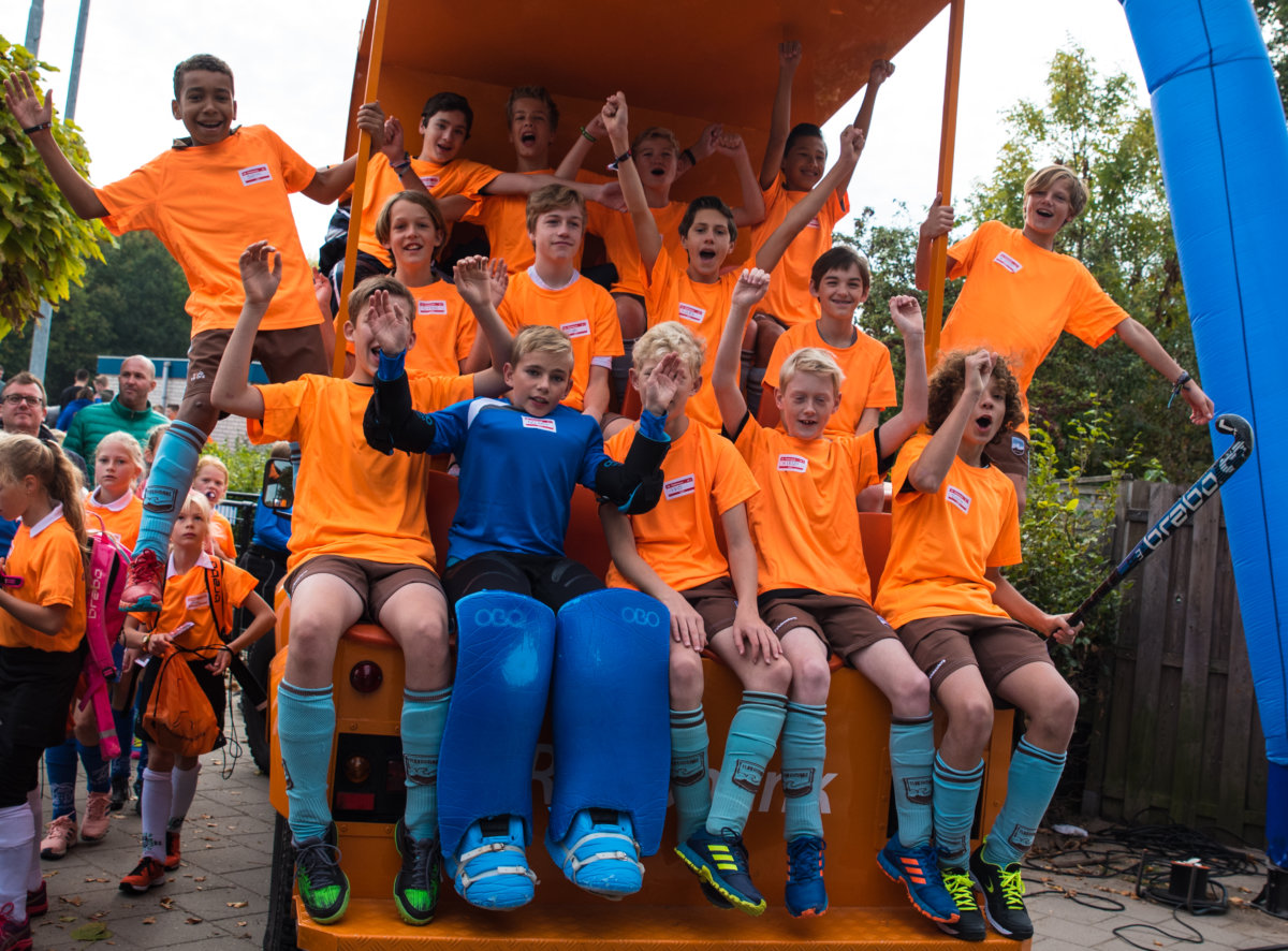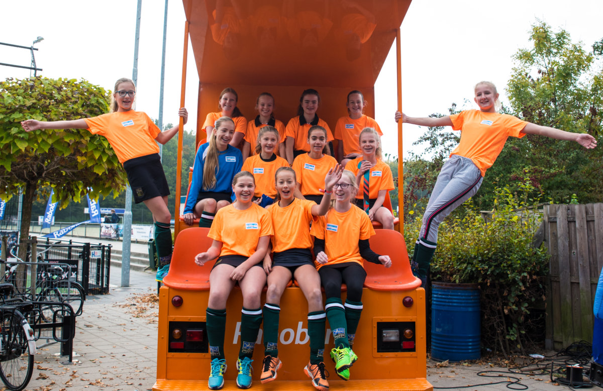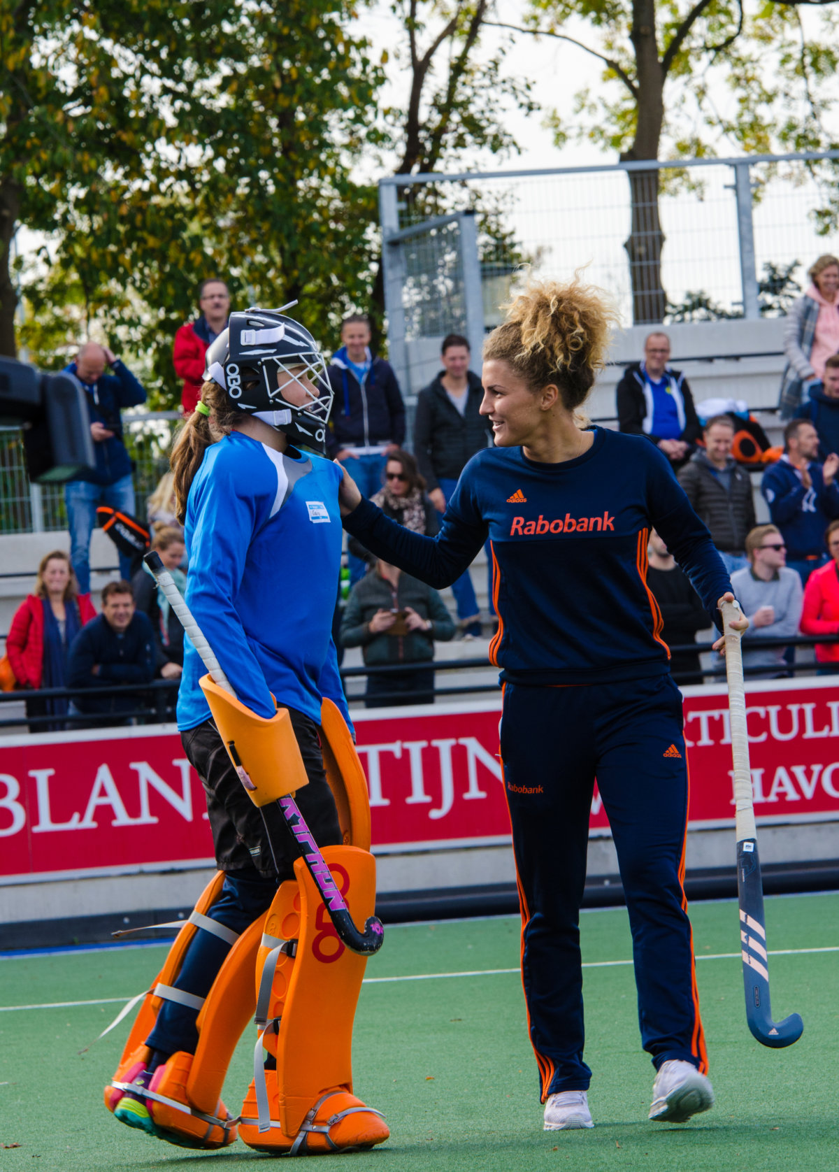Stralende internationals én nog meer stralende kinderen op de Rabo Fandag 2018 zaterdag op het complex van Kampong in Utrecht. De honderden uitverkoren kinderen konden pielen met Jorrit Croon, de sleeppush leren van Caia van Maasakker of Seve van Ass en de backhand slaan met Derck de Vilder. Er was een gezamenlijke lunch op het veld en natuurlijk werden de Oranje-helden uitgebreid gehuldigd.