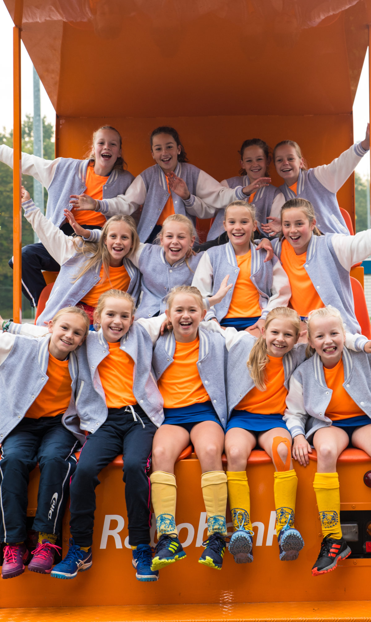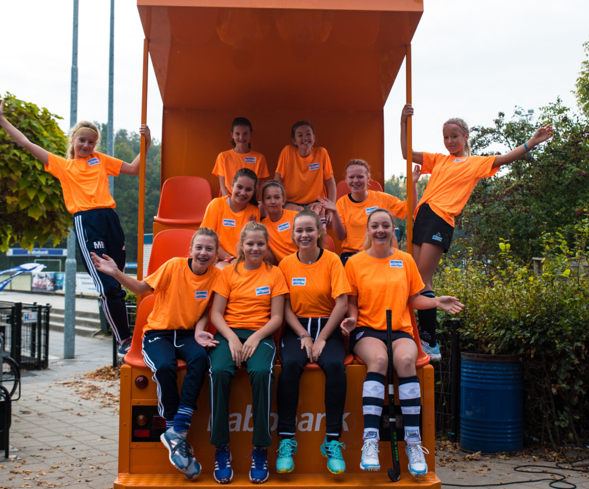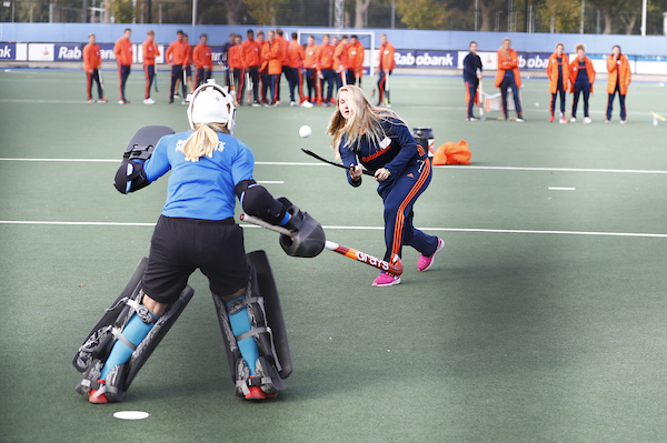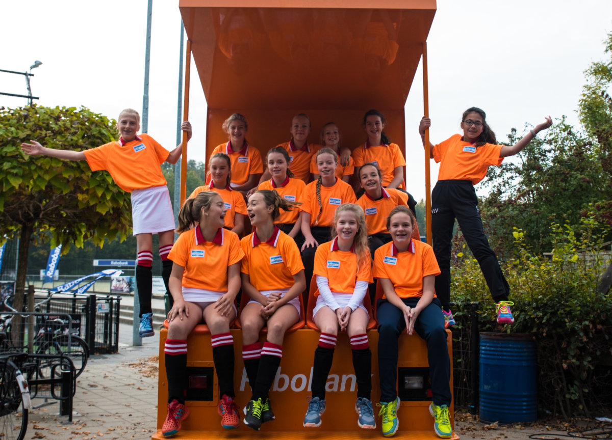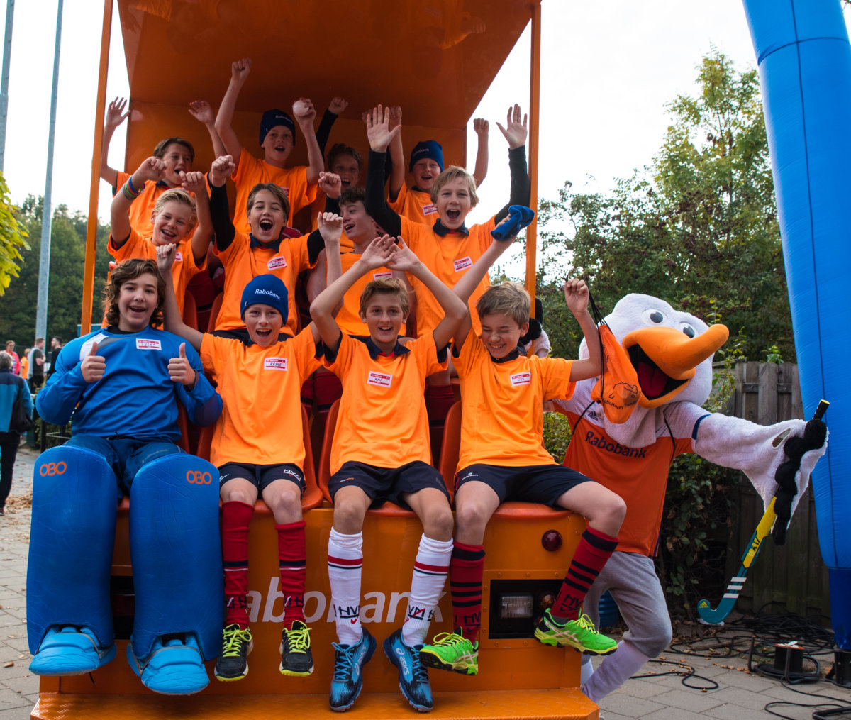 Stralende internationals én nog meer stralende kinderen op de Rabo Fandag 2018 zaterdag op het complex van Kampong in Utrecht. De honderden uitverkoren kinderen konden pielen met Jorrit Croon, de sleeppush leren van Caia van Maasakker of Seve van Ass en de backhand slaan met Derck de Vilder. Er was een gezamenlijke lunch op het veld en natuurlijk werden de Oranje-helden uitgebreid gehuldigd.