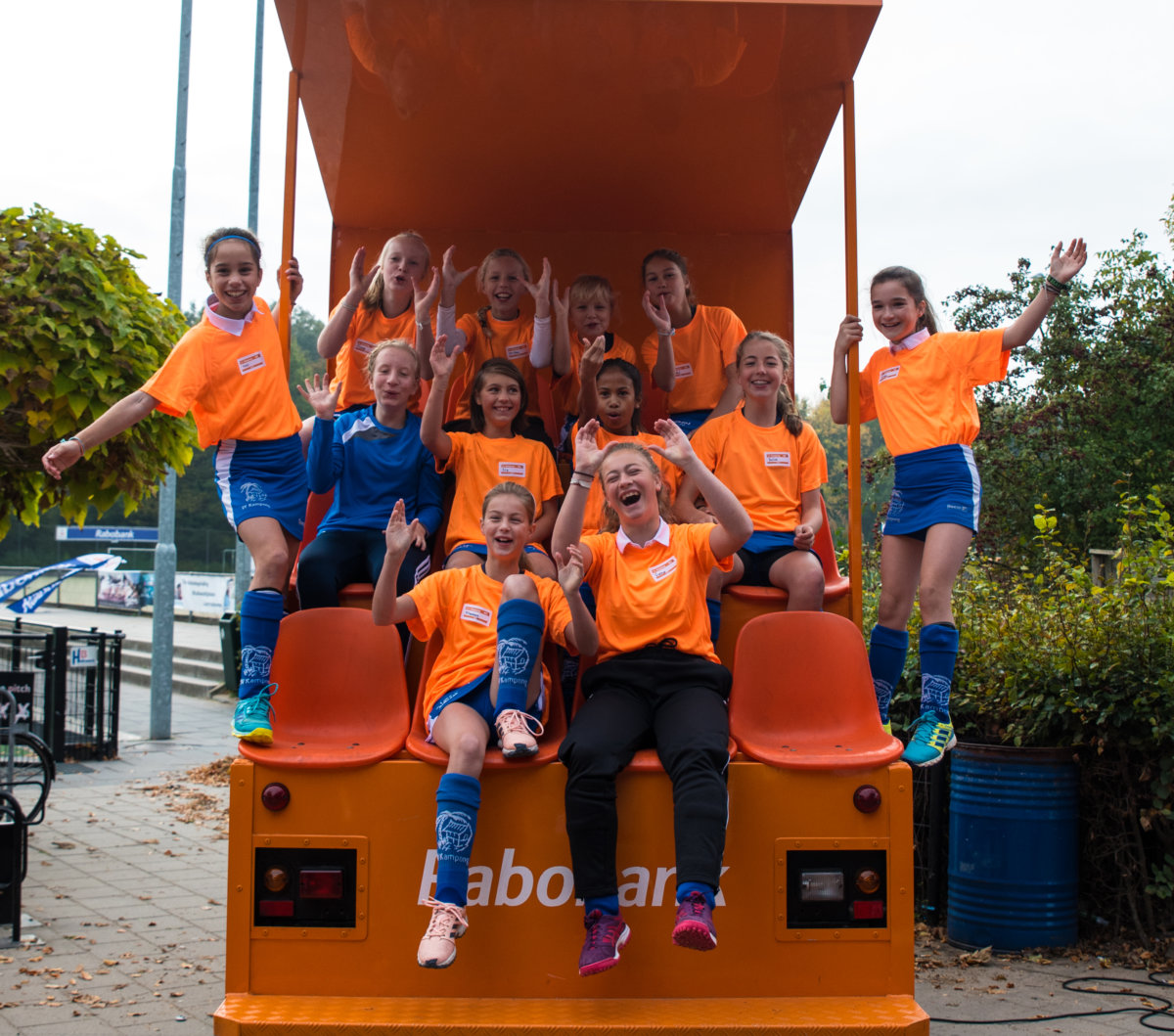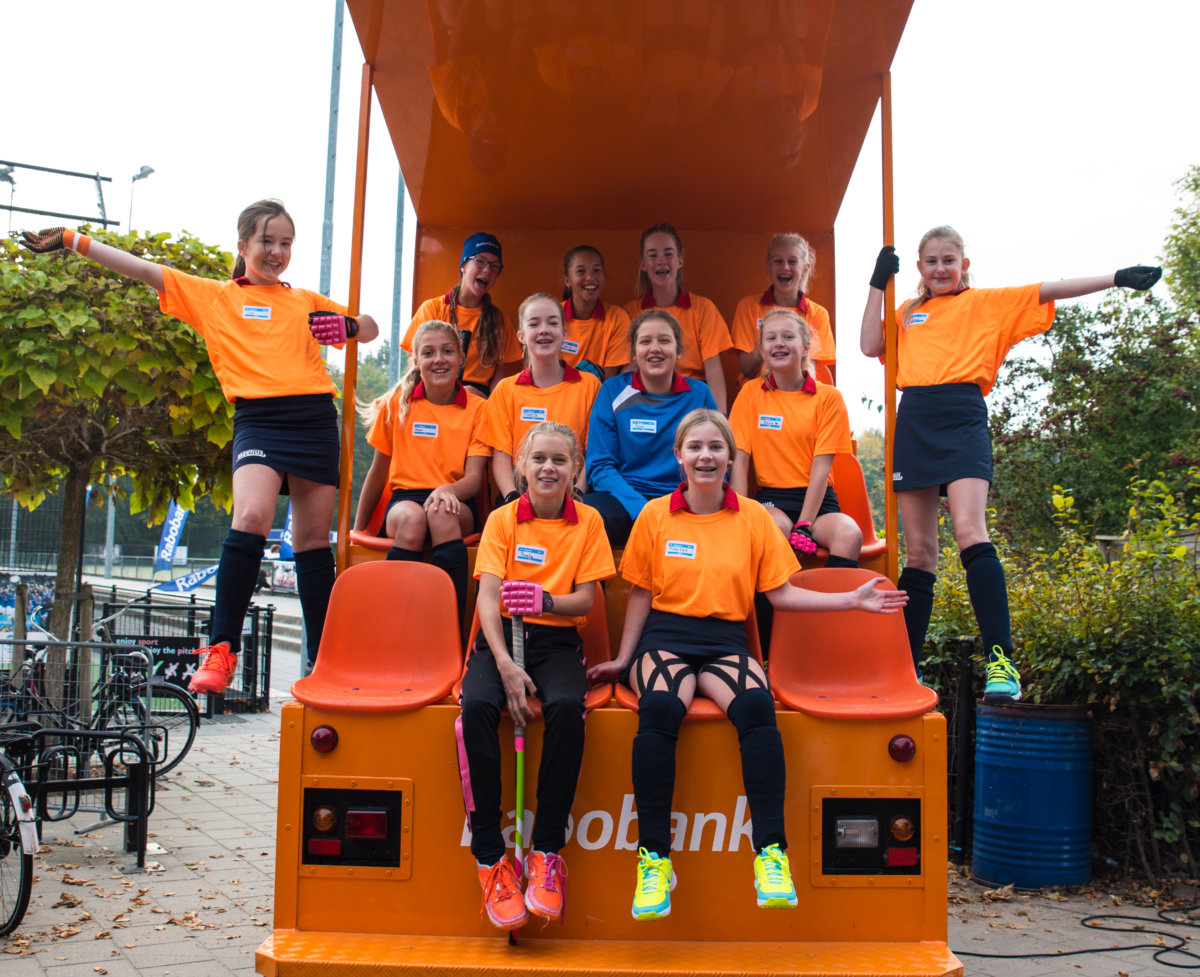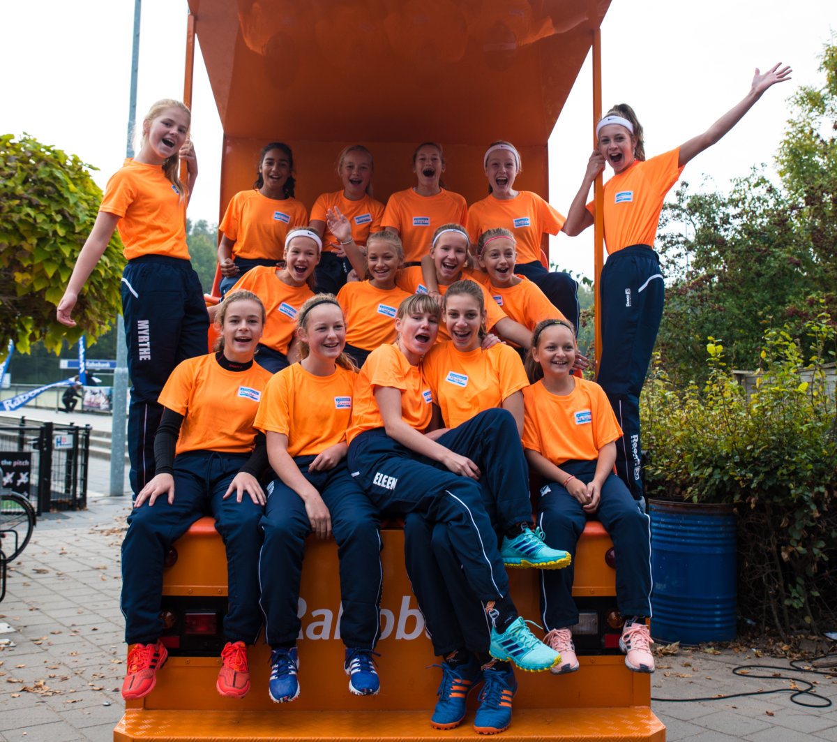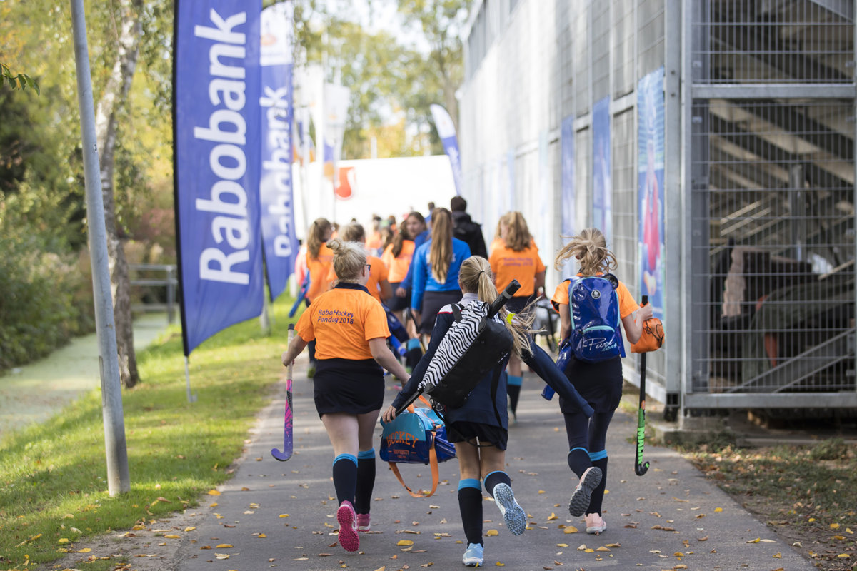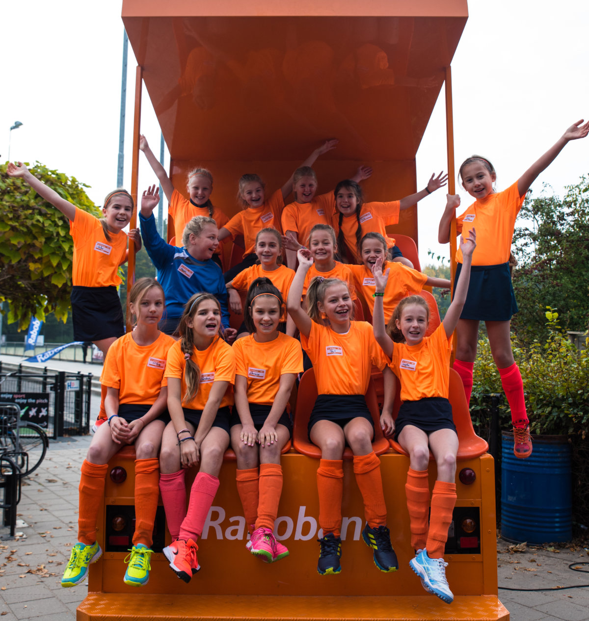 Stralende internationals én nog meer stralende kinderen op de Rabo Fandag 2018 zaterdag op het complex van Kampong in Utrecht. De honderden uitverkoren kinderen konden pielen met Jorrit Croon, de sleeppush leren van Caia van Maasakker of Seve van Ass en de backhand slaan met Derck de Vilder. Er was een gezamenlijke lunch op het veld en natuurlijk werden de Oranje-helden uitgebreid gehuldigd.