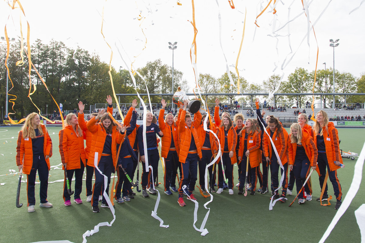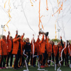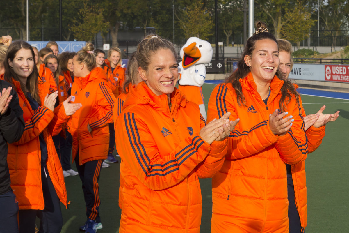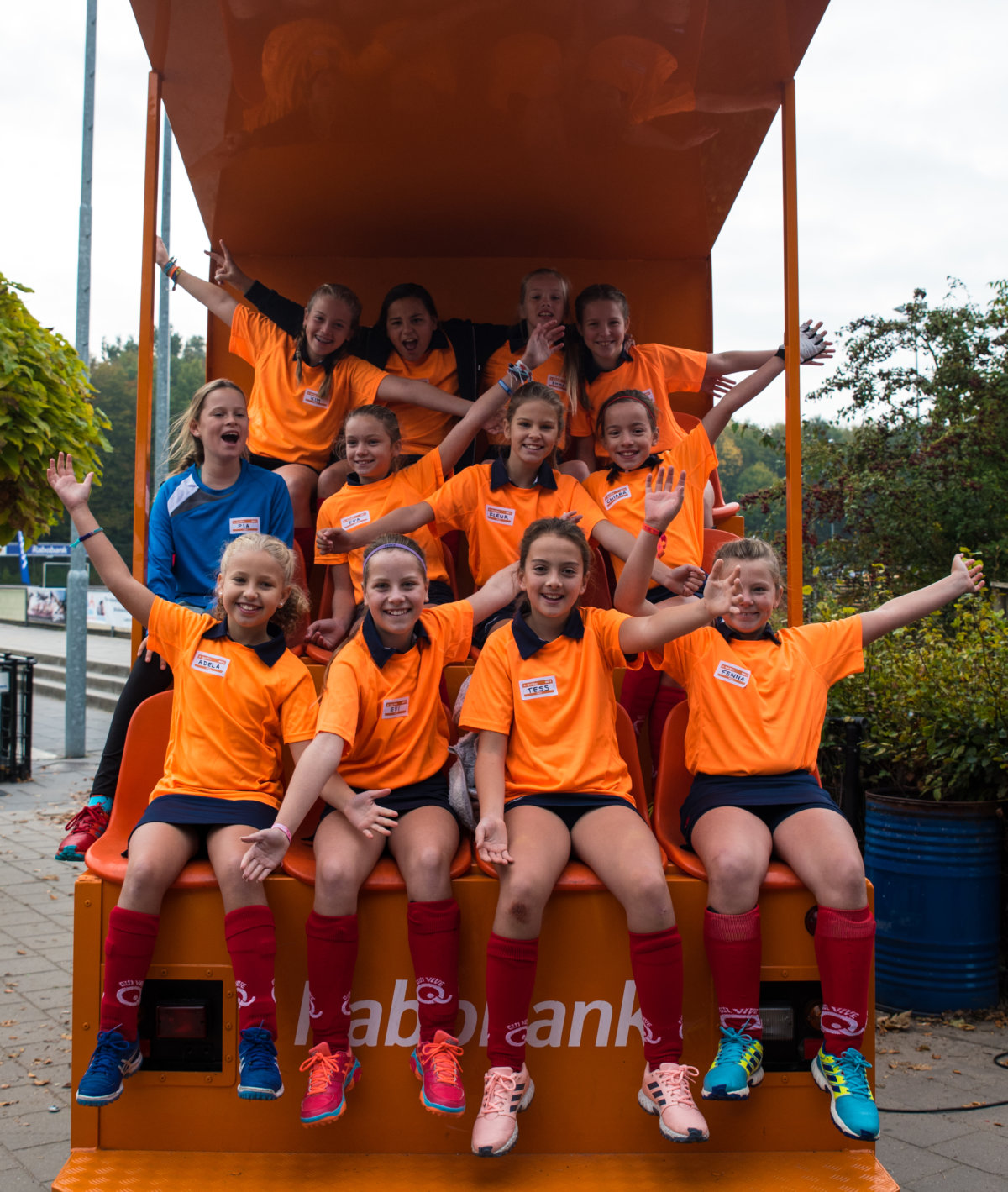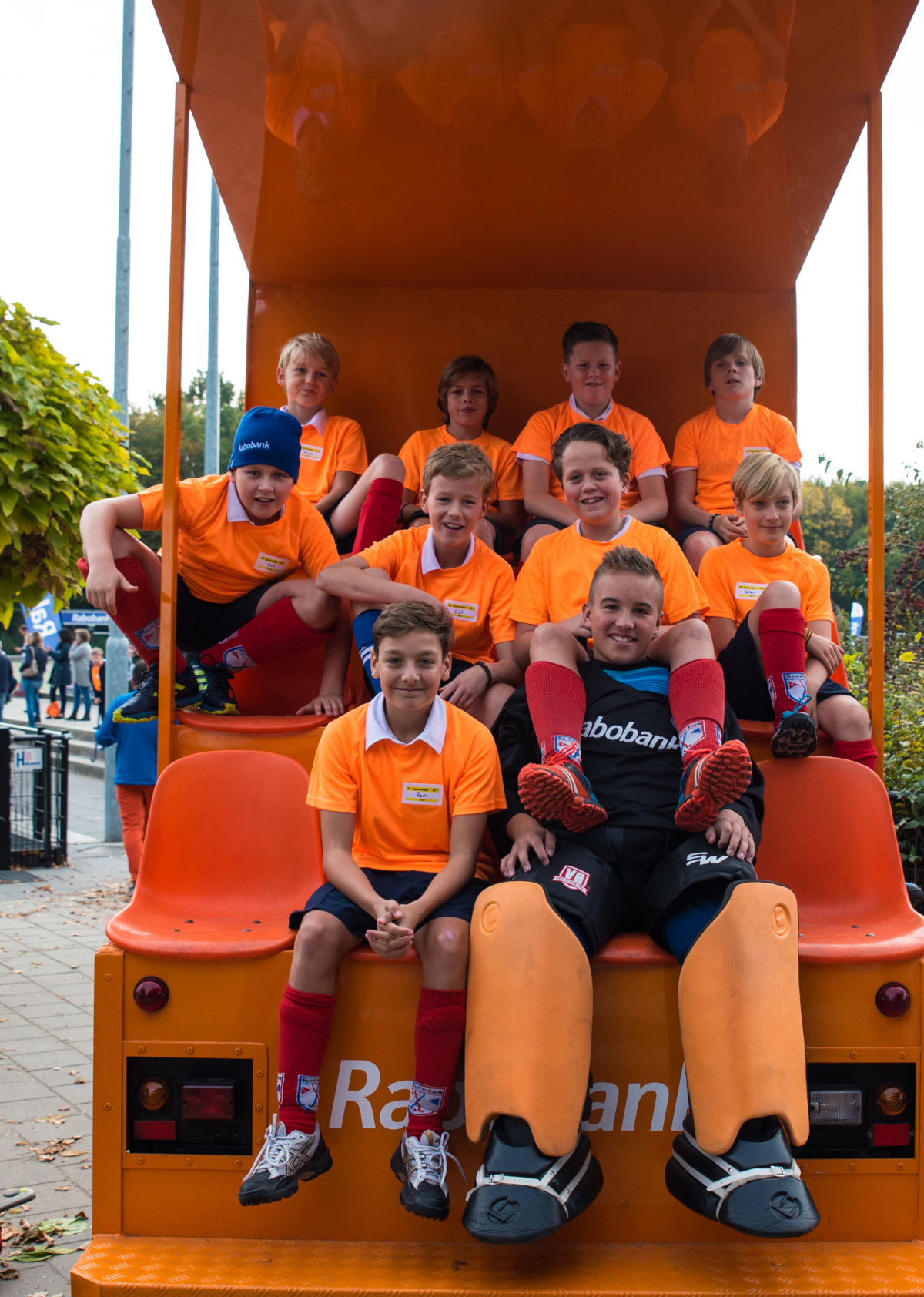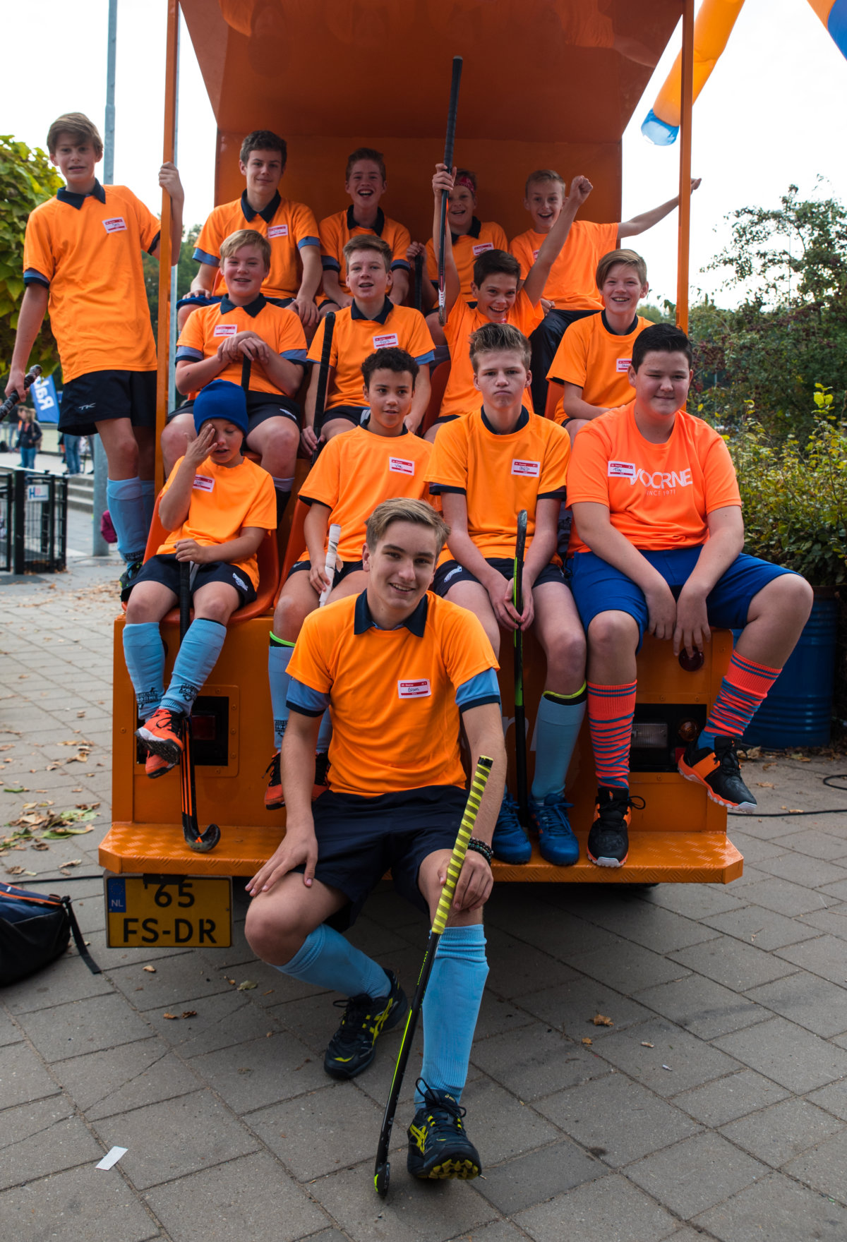 Stralende internationals én nog meer stralende kinderen op de Rabo Fandag 2018 zaterdag op het complex van Kampong in Utrecht. De honderden uitverkoren kinderen konden pielen met Jorrit Croon, de sleeppush leren van Caia van Maasakker of Seve van Ass en de backhand slaan met Derck de Vilder. Er was een gezamenlijke lunch op het veld en natuurlijk werden de Oranje-helden uitgebreid gehuldigd.