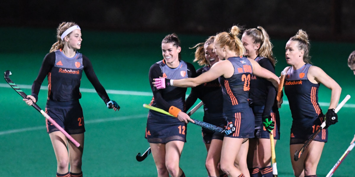Oranje kwam al vroeg in de wedstrijd op voorsprong dankzij een rake strafcorner van Yibbi Jansen in de zevende minuut. Daarmee gaf het grote 18-jarige strafcornertalent haar debuut extra glans. Naast Jansen liet de bondscoach ook Lieke Hulsen en Famke Richardson debuteren.