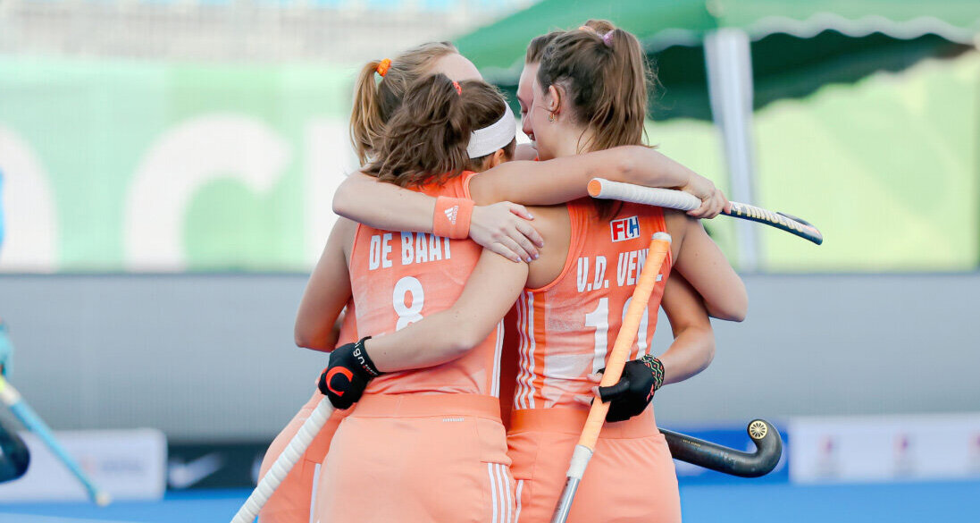 Hoewel de uitslagen in de poule chronologisch 14-1, 10-0 en 21-1 werden en Oranje dus telkens tekende voor een monsterscore, lukte er een ding keer op keer niet. Die vroege openingsgoal maken. Zelfs bij de 21 treffers (in dertig minuten tijd) duurde het zes minuten (!) voordat Oranje voor het eerst raak prikte.