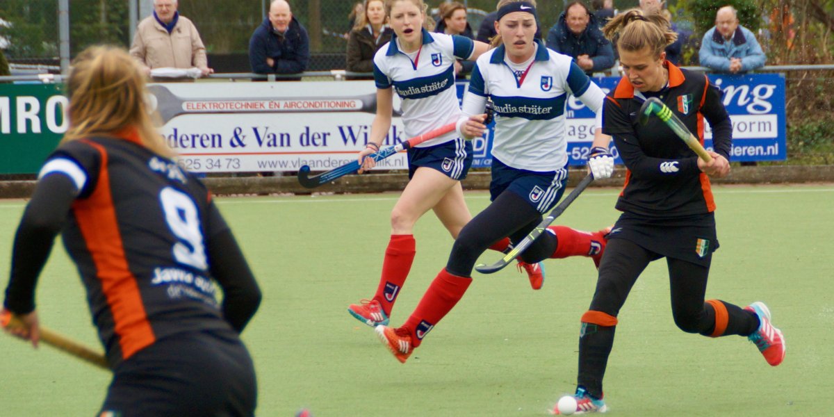 ‘Ik vond ons in de eerste helft goed, maar in de tweede helft hadden we het lastig. Ook omdat we veel kaarten kregen’, stelde HIC’s Judith Stuij. En inderdaad: in die tweede helft was Huizen de bovenliggende partij, al werden er aanzienlijk minder kansen gecreëerd dan voor rust. Maar dan, in de 65e minuut, bleek het tóch mogelijk. In een drukke cirkel belandde de bal bij Stuij, die bij de tweede paal in een leeg goal kon pushen. Niet te missen, maar zo stelde ze na afloop glunderend: ‘Je moet hem toch maar maken.’ In de resterende vijf minuten kreeg Huizen nog een strafcorner, maar die werd verkeerd gestopt. Even later ging de bal, na een lange corner, alsnog de goal in. ‘Ze juichten heel overtuigend’, vond Stuij. ‘Maar die bal was door ons aangeraakt, niet door hen.’ Ook de scheidsrechters doorzagen dat, waardoor de wedstrijd eindigde in een 0-1 winst voor HIC.