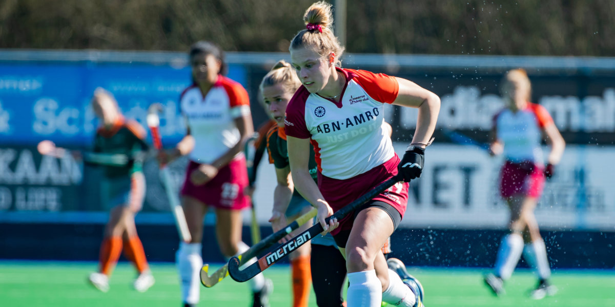 Helaas verloren de vrouwen van Almere deze wedstrijd met 3-2. Zondag speelden de dames thuis tegen Schiedam. ‘We kon elkaar goed vinden en er werden goals gemaakt. Ondanks de 3-0 voorsprong en de goede flow hadden we in het derde kwart een moment van paniek, waardoor we wat minder gefocust speelden. Uiteindelijk winnen we de wedstrijd met 4-2, maar dat paniekhockey moet er echt uit.’
