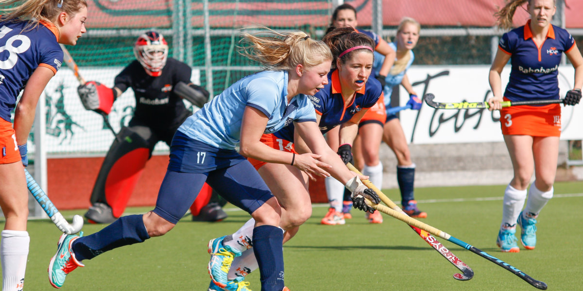 Die druk is er toch wel. Want ondanks dat Nijmegen fraai bovenaan staat in de Overgangsklasse A, met een drie punten voorsprong op Voordaan, hapert de aanval nog wel eens. ‘We hebben te veel kansen nodig om te scoren’, erkent Bombach. ‘Net zoals afgelopen zondag tegen Rotterdam. Als we dan in de eerste tien minuten drie keer scoren, is de wedstrijd al gelopen. Nu wordt het nog spannend. Al laten we in de slotfase zien waarom we in de Hoofdklasse thuishoren. We slaan dan in een paar minuten twee keer toe en winnen alsnog met 2-1. Die wedstrijd hadden we vorig seizoen niet meer gewonnen.’