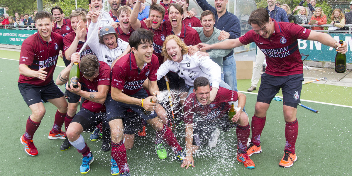 ‘Twee maanden geleden stonden we hier’, vertelde aanvoerder Wouter Rens. ‘We hadden net van Push verloren en we stonden vijfde op de ranglijst. Maar toch wisten we toen dat als onze structuur goed staat wij een gevaarlijke ploeg konden zijn. Mijn inschatting was toen dat we nog één keer punten konden verliezen en alsnog kampioen konden worden. Dat is vandaag gebeurd.’