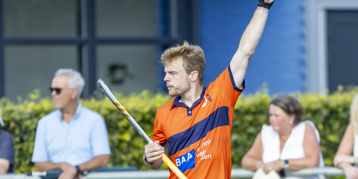 Het is ergens wel illustratief voor de rol die Van der Weerden bij zijn oude liefde vervult op de eerste competitiezondag van de Overgangsklasse. Hij treedt niet veel op de voorgrond. Twee van de vijf corners pusht het fenomeen, dat in april nog de EHL-finale speelde met Rot-Weiss Köln. Een keer is-ie heel dicht bij succes, als zijn sleep op de lat knalt. Vanaf links- en rechtsachter faciliteert hij vooral. Geeft scoopjes op maat. Hij moedigt aan. Complimenteert. ‘Lekker maatje!’, klinkt het bijna vaderlijk richting een teamgenoot die meer dan tien jaar jonger is.