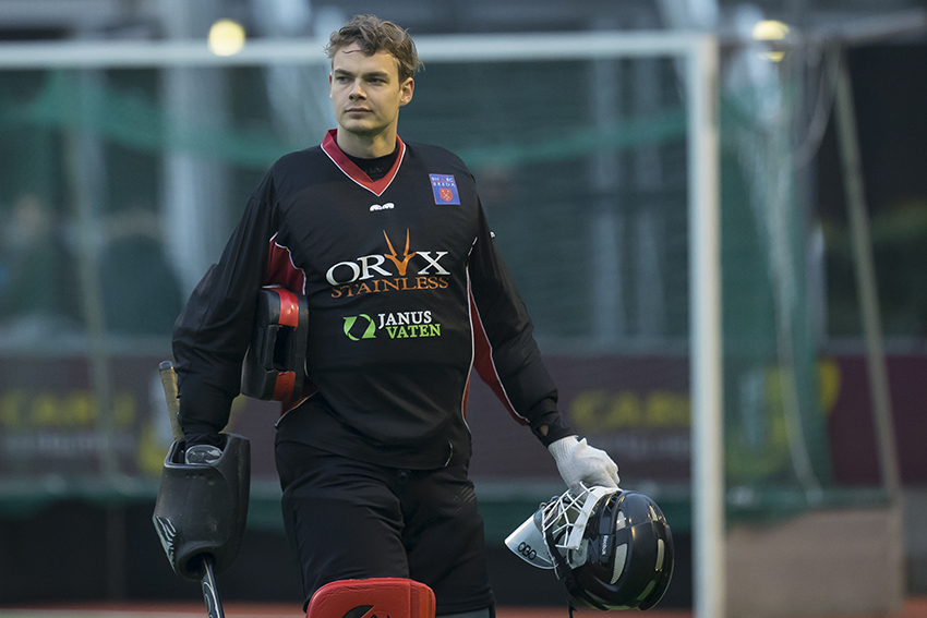Na de 3-0 in de tweede helft, was Van Monfort vlak voor tijd nog betrokken bij een curieus voorval. Victoria-aanvaller Dean Symons ging alleen op Van Monfort af. Die snelde uit zijn doel en keerde de bal met zijn hand buiten de cirkel. Gele kaart, oordeelde de arbiter. Van Monfort zet zijn helm af en slenterde naar de kant. ‘Die kaart was terecht. Ik stak puur uit reflex mijn hand uit.’