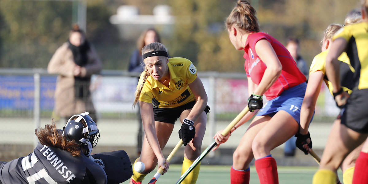 Toch rechtte de hekkensluiter al vrij snel de rug. In de achtste minuut sloeg oudgediende Lise Donkersloot vanuit een strafcorner de thuisploeg weer naast de Rotterdammers. Van der Meer: ‘Daarna kregen we nog genoeg strafcorners, maar ik denk dat er geen een goed is aangegeven of gestopt. Het was echt de kwaliteit van Lise dat zij uit een strafcorner scoorde.’