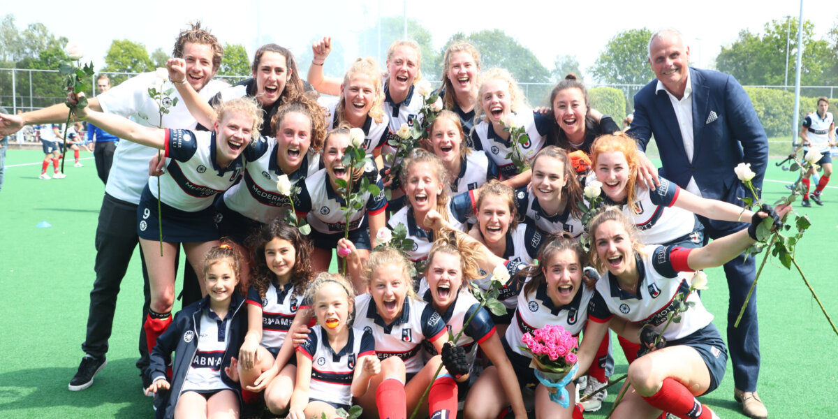Aanvoerder Amber Folmer is bezig aan haar tiende en laatste seizoen bij de club uit het Gooi. ‘Dit is echt ongelooflijk. We hadden aan een gelijkspel genoeg, maar gingen volle bak voor de winst. We wisten dat ze een goede corner hebben, maar onze keepster en eerste uitloper (Robin van den Ende en Noor Knoop, red.) hebben die fantastisch tegengehouden. Ik leef nu een beetje in een roes, maar had het idee dat wij de bovenliggende partij waren. Zij kwamen er soms mooi uit, maar wij hebben kansen en corners gehad en hadden in mijn beleving het meeste balbezit.’