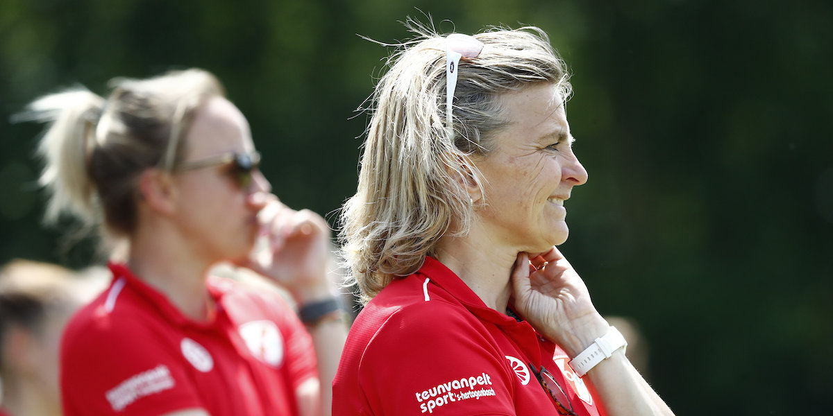 Assistent-coach Maartje Paumen schreeuwt MOP aanwijzingen toe. Foto: Willem Vernes
