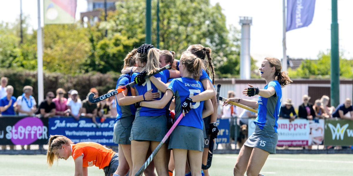 Al kletsnat van het bier onttrok aanvoerder Imke van Heemskerck van Beest zich voor even van de feestvreugde. ‘Niet normaal dit. Het is onwerkelijk en tegelijkertijd zo verdiend. We hebben in deze wedstrijd veel kansen niet afgemaakt, maar verder hadden ze weinig te zeggen. We zaten overal bovenop. We hebben keihard gevochten. Konden er een paar niet meer, dan trokken anderen een sprintje om het te herstellen. En dat we nu op onze eigen club promoveren, is een droom die uitkomt.’