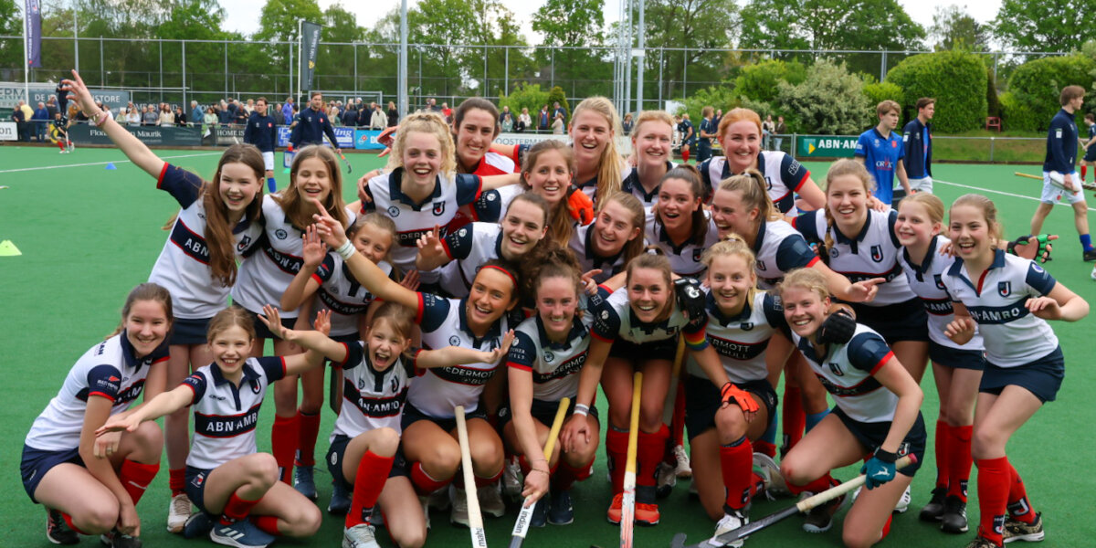 Op eigen veld kroonde Huizen zich tot kampioen van de Promotieklasse. Noa van Leer en – de naar SCHC vertrekkende – Noor Knoop tekenden tegen laagvlieger Leiden voor de Gooise doelpunten. Fleur Gort maakte namens Leiden nog wel de aansluitingstreffer, maar dichterbij de koploper kwam de ploeg van Jorge Nolte niet. Daarmee mag Huizen zich, vijf jaar na de degradatie, opmaken voor een terugkeer op het hoogste niveau.