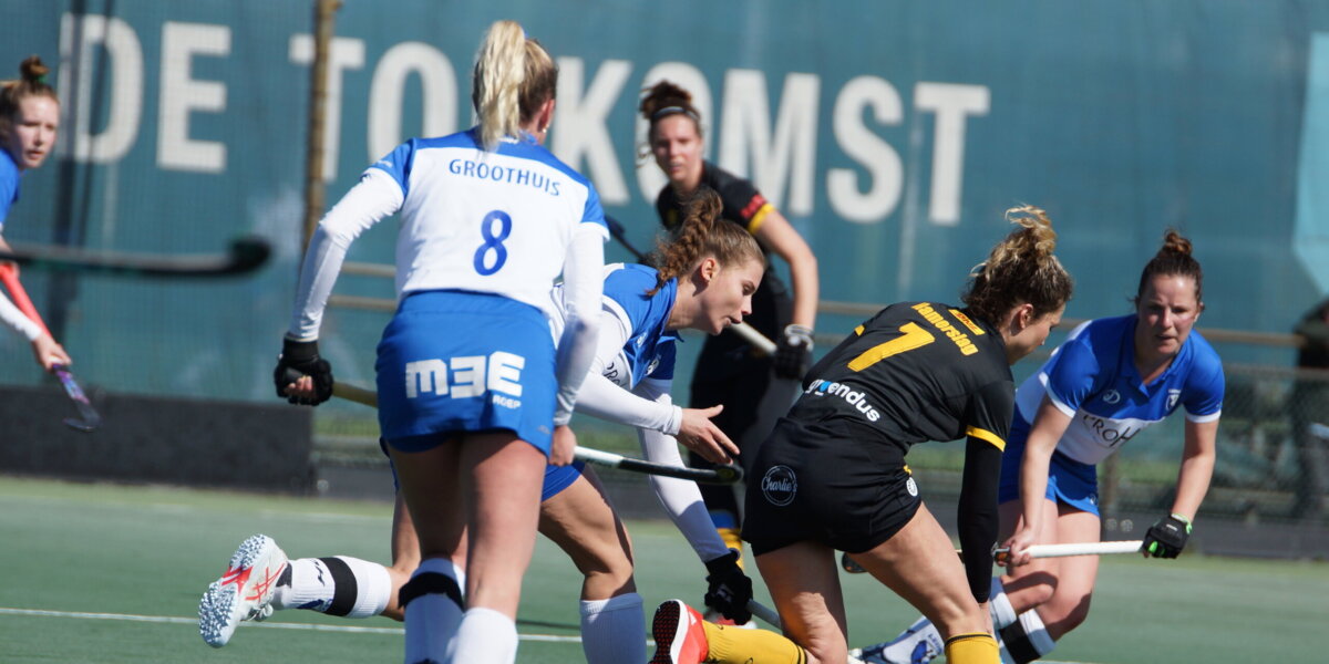 Het contrast met vorig jaar is groot. Toen stond Leonidas wekenlang aan kop en mocht het uiteindelijk dus meestrijden om een plek in de Hoofdklasse. ‘We hebben gevoeld hoe gaaf en mooi dat was’, blikt Leonidas-routinier Daphne Groothuis terug. ‘Die ervaring smaakte absoluut naar meer. Begin dit seizoen hebben we ook naar elkaar uitgesproken daar weer voor te gaan. Tegelijkertijd wisten we dat het lastig is om die prestatie te evenaren. Bovendien waren de verwachtingen van buitenaf logischerwijs hoger. Het enige wat we konden doen, is keihard werken.’