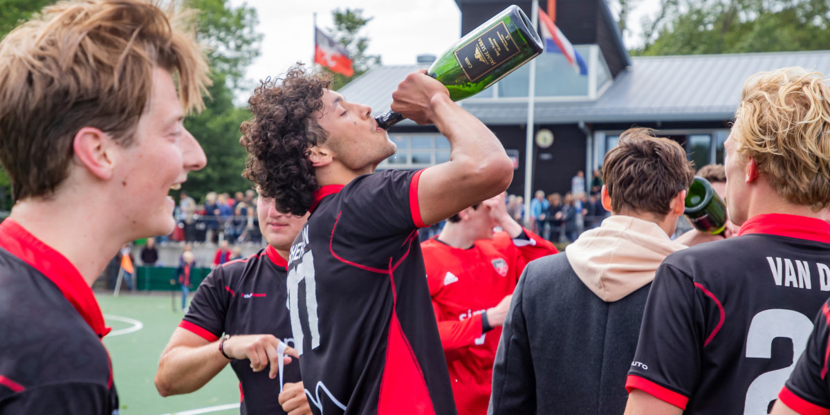 Noam Sheridan tuitte zijn lippen na afloop maar eens flink om de fles met champagne. De buit was binnen en een borrel dik verdiend, want het was een lang en zwaar seizoen. De aanvaller van HBS had vanmiddag met twee doelpunten bovendien een groot aandeel in de 4-1 overwinning op Groningen. Daarmee werd het een afscheid in stijl voor het 22-jarige talent. Sheridan verdedigt volgend seizoen de kleuren van kersverse hoofdklasser Hurley.