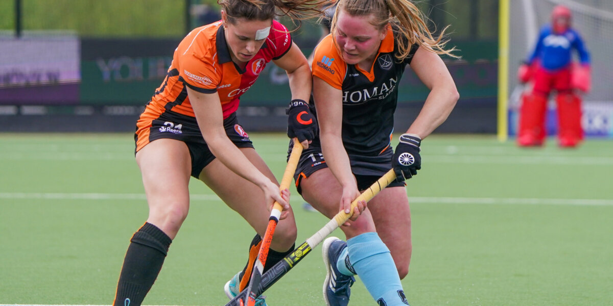 Marle Brenkman (Groningen) en Guusje Moes (Oranje-Rood) in duel afgelopen zondag. Foto: Joris Verwijst/Orange Pictures