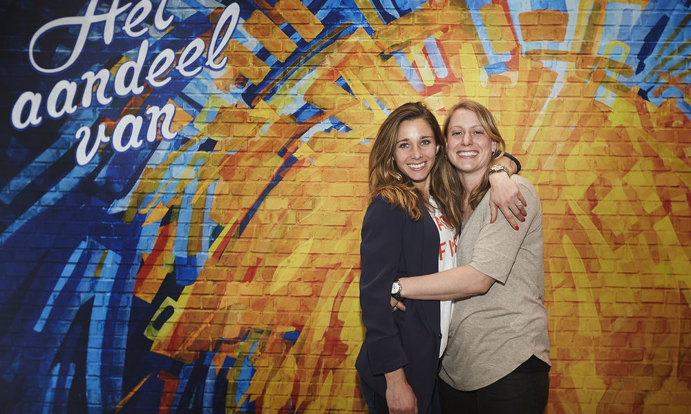 Ellen Hoog: ‘Floortje Joosten, op de club beter bekend als ‘Kip’, is heel belangrijk geweest in mijn hockeycarrière. Ze was mijn teamgenoot in mijn eerste jaar in de Hoofdklasse bij SCHC. Dat was best zwaar en door haar durfde ik door te zetten. Zoals ze altijd voor me klaarstond en af en toe de spanning doorbrak, dat is onbetaalbaar.’ Ellen verraste Floortje op SCHC samen met rapper Sef met een eerbetoon.