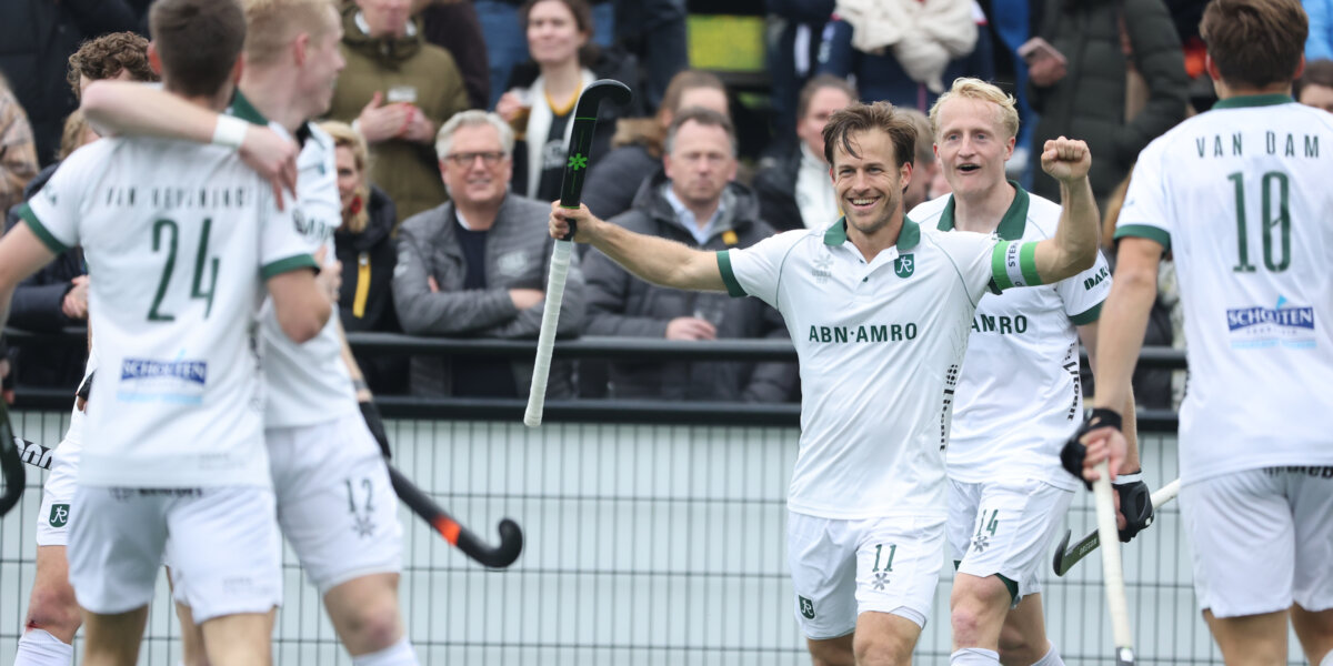 Vuist in de lucht in het duel met Den Bosch: de 25ste Hoofdklasse-hattrick van Jeroen Hertzberger is een feit. Foto: Willem Vernes