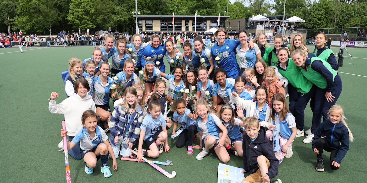 Het geloof in eigen kunnen kreeg bij de Hurley-speelsters een extra boost toen ze het hoofdveld op het Amsterdamse Bos betraden. Daar waar tijdens competitieduels het aantal bezoekers nog wel te tellen is, daar puilden de tribunes op Hemelvaartsdag uit. De familiaire Bosclub had flink uitgepakt en voor een heerlijke entourage gezorgd. ‘Ik ben echt trots op wat de club hier heeft neergezet’, glimlachte keepster Wendela van Dedem. De ballenvanger naast het doel dat zij de eerste helft verdedigde, was behangen met steunbetuigingen aan haar adres. Voor Van Dedem stopt haar carrière als het play-offavontuur van haar club eindigt. Lachend: ‘Die spandoeken kunnen ze laten hangen, hoor. Want dit was nog niet mijn laatste thuiswedstrijd.’