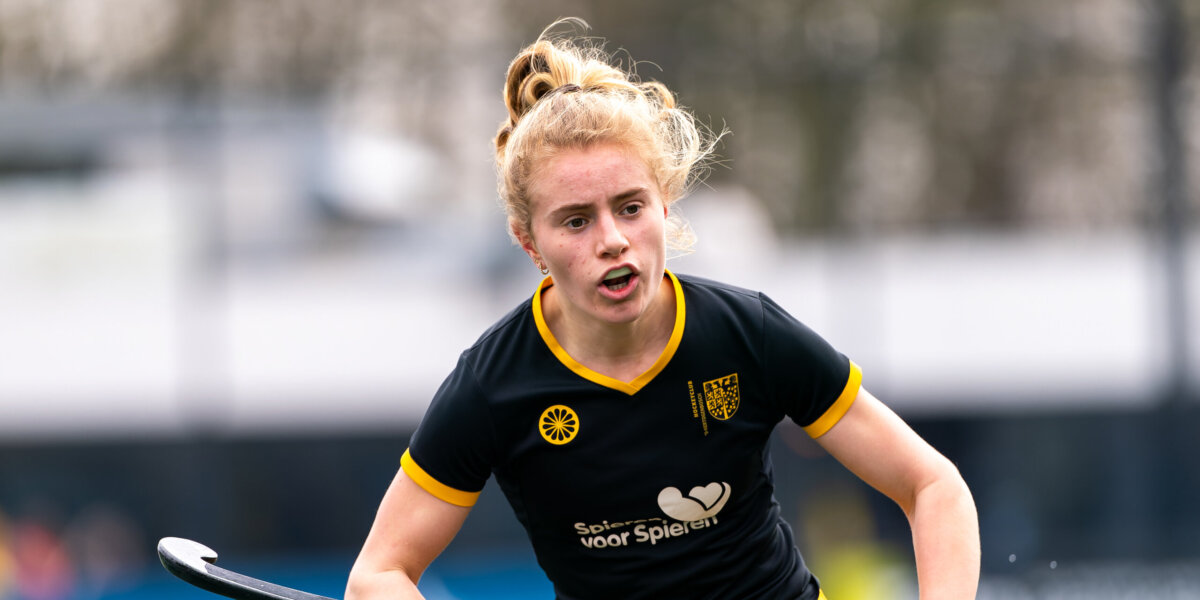Met nadruk: ‘Ik wil echt héél graag dames-1 van Den Bosch halen. Bij deze club hockeyen is een meisjesdroom van me’, vertelt ze na het verlies tegen de leeftijdsgenoten van Oranje-Rood (3-1), een wedstrijd waarin ze een assist gaf.