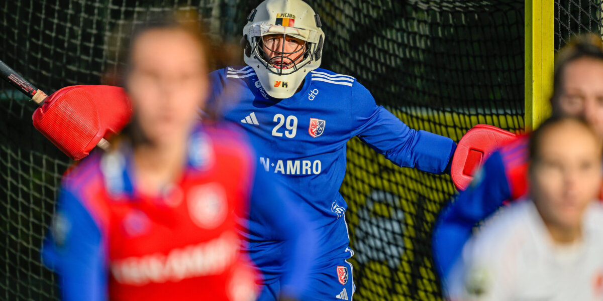 Het zijn de woorden van Elodie Picard. De Belgische sluitpost had een eenvoudige middag na de zege op Oranje-Rood (5-0), maar toch is ze na drie maanden in Nederland nog altijd verbaasd. De verschillen met haar geboorteland zijn groot. ‘Als ik hier op de training even niet op let, heb ik meteen een blauwe plek. In België kon ik af en toe echt wel even relaxed in de goal staan. Hier schieten ze iedere bal op goal om te scoren. Al is de oefening nog zo suf. De hardste klappen? Ik denk die van Jip Dicke. Of Yibbi Jansen en Maud van den Heuvel.’