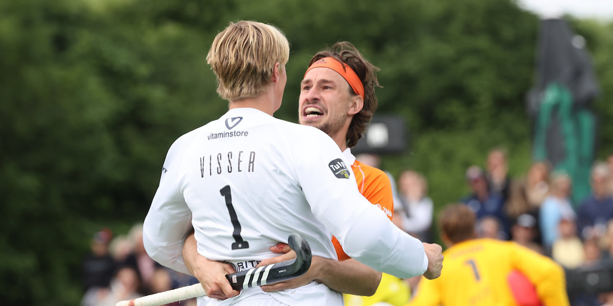 Na afloop vloog hij meteen zijn doelman, Maurits Visser, om de hals. ‘Maurits heeft het in die wedstrijden vorig jaar waanzinnig gedaan. En nu deed hij het weer fantastisch. Als je keeper daarin zo goed is, geeft dat de rest van het team zo veel vertrouwen. Alle credits dus voor hem.’