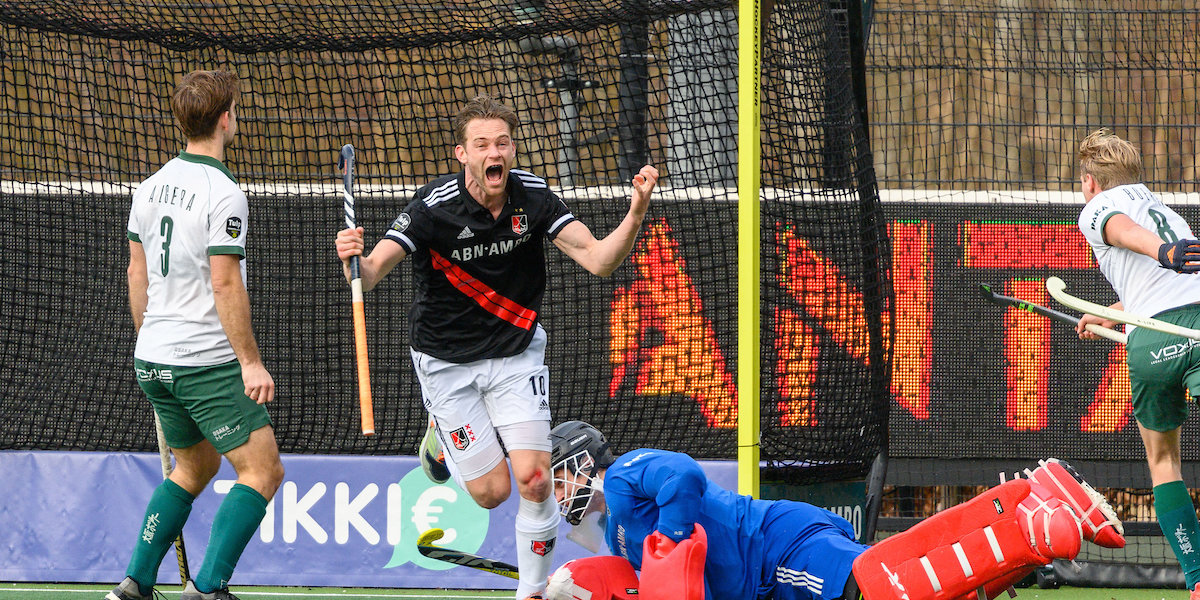 Een lach. Die brak zondag weer door bij Amsterdam. De branie. De bluf. Het va-banque. Hockeyen alsof het de laatste dag is. Alsof de morgen niet bestaat.